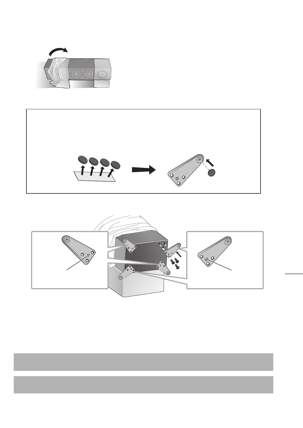 6 Fastgør grundpladerne (4 stk.) korrekt til højttaleren med de medfølgende skruer.