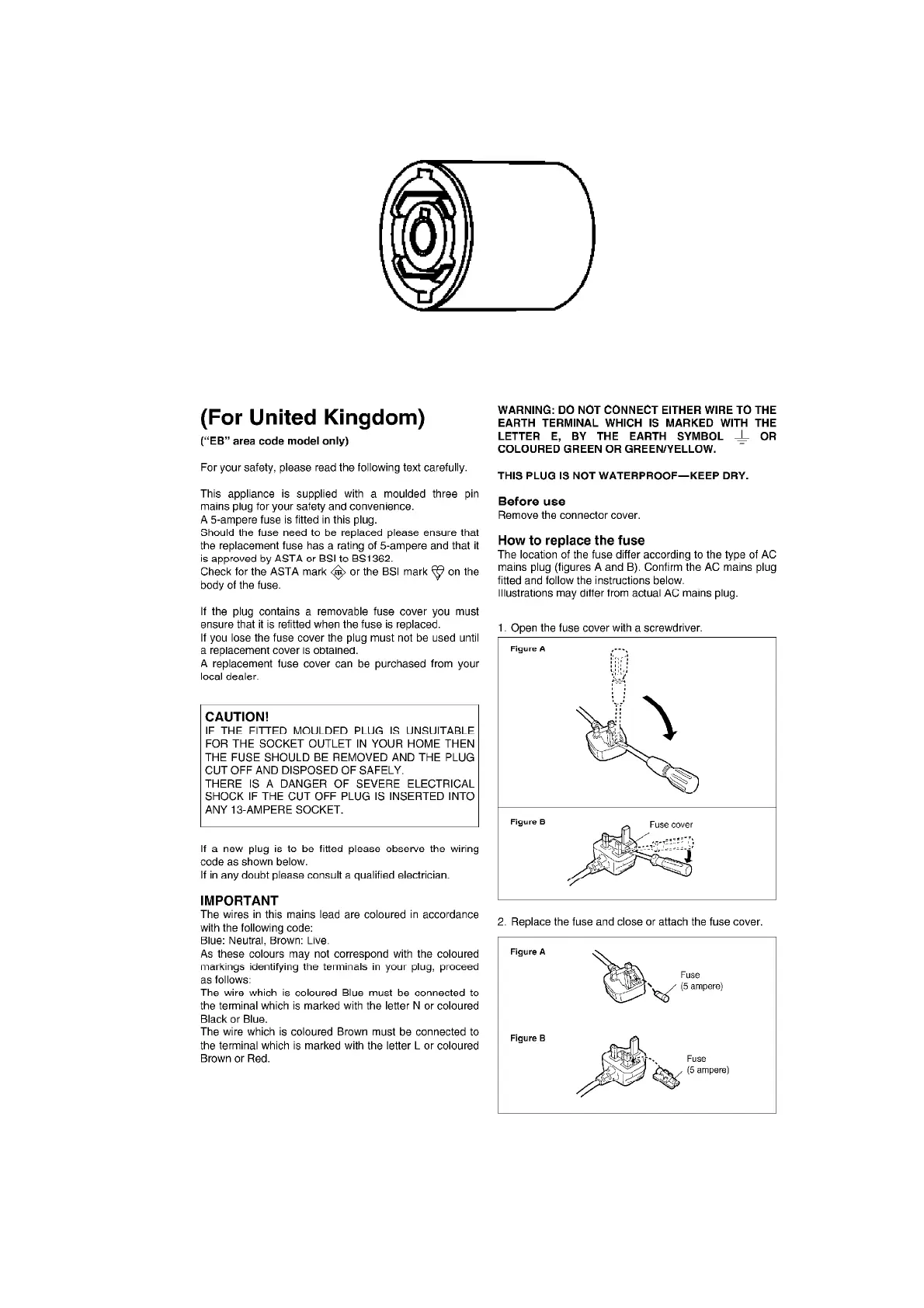 Technics SB-HD350 - UK Model AC Mains Lead Safety