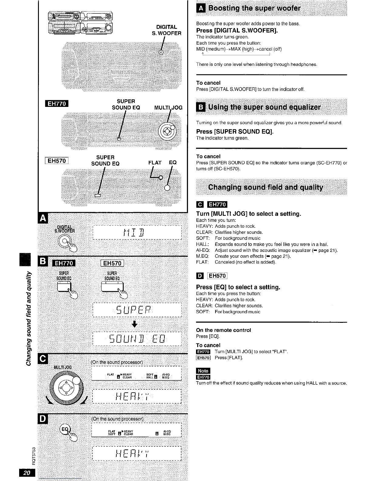 Technics SC-EH570 - Changing Sound Field and Quality: Equalizers; Boosting the Super Woofer; Using the Super Sound Equalizer; Sound Processor EQ Modes