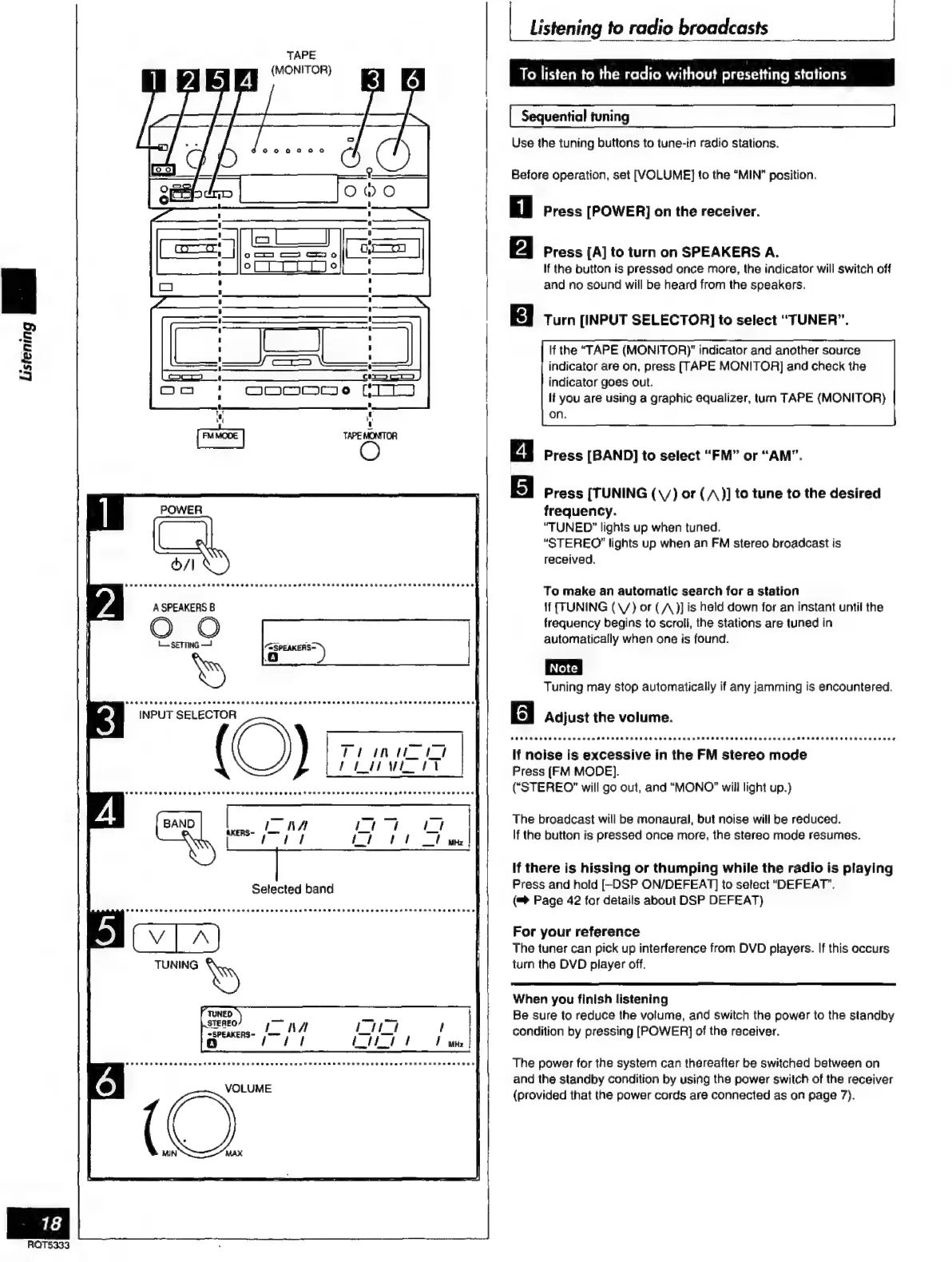 Technics SC-S2350 - Listening to Radio Broadcasts Oo; To Listen to the Radio Without Presetting Stations; Cceeeeeeeees