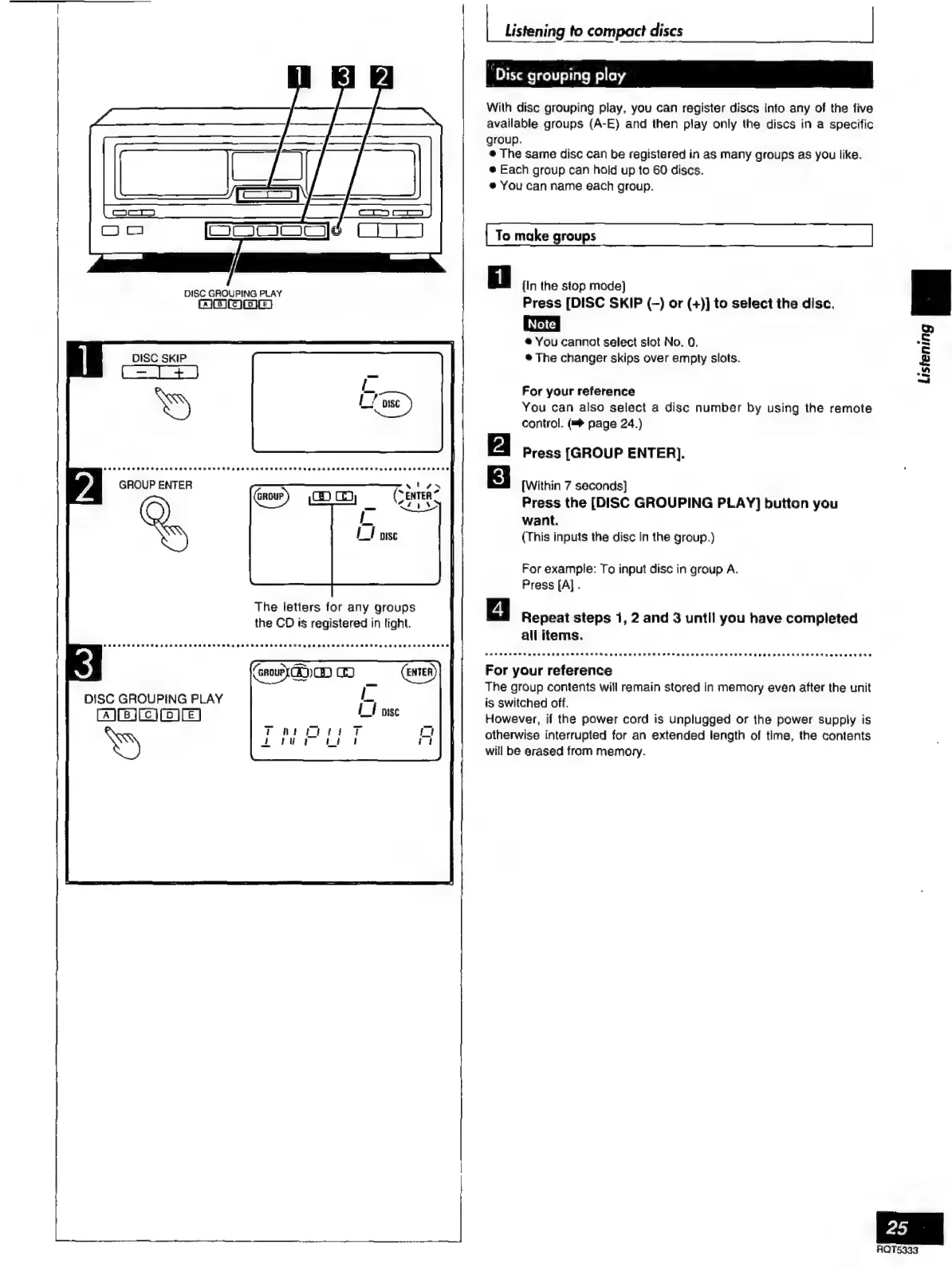 Technics SC-S2350 - Disc Grouping Play on O