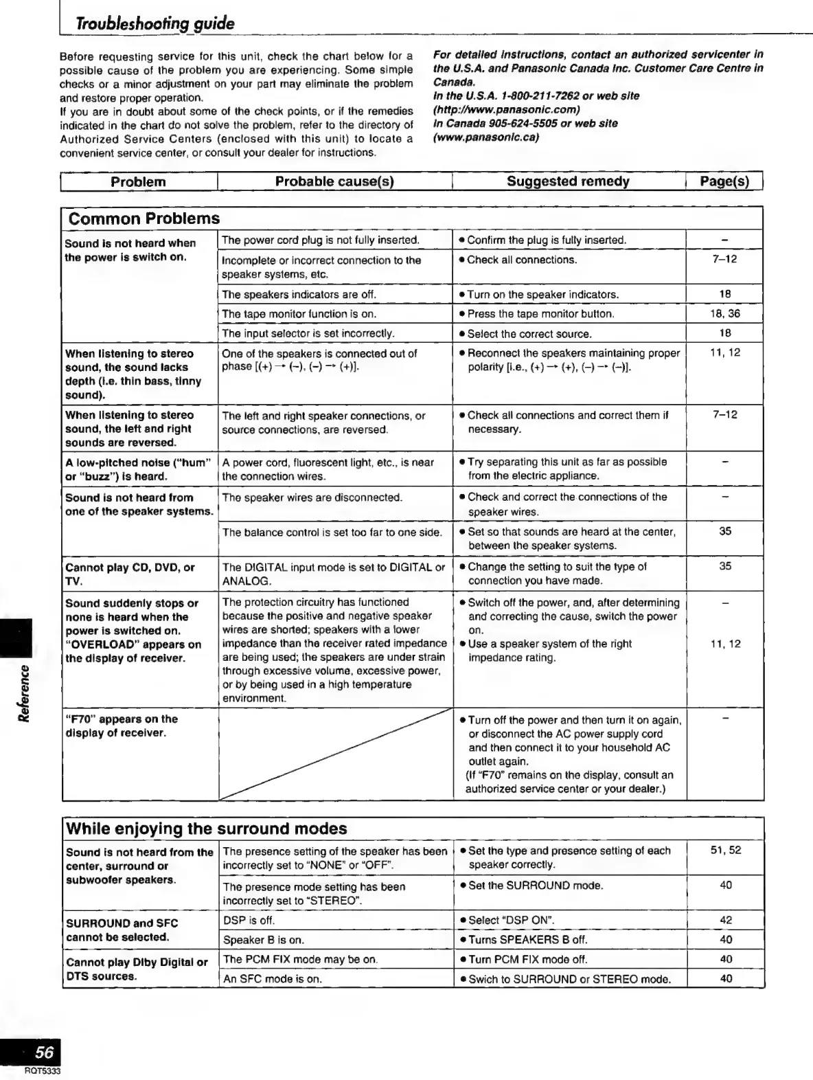 Technics SC-S2350 - Troubleshooting Guide