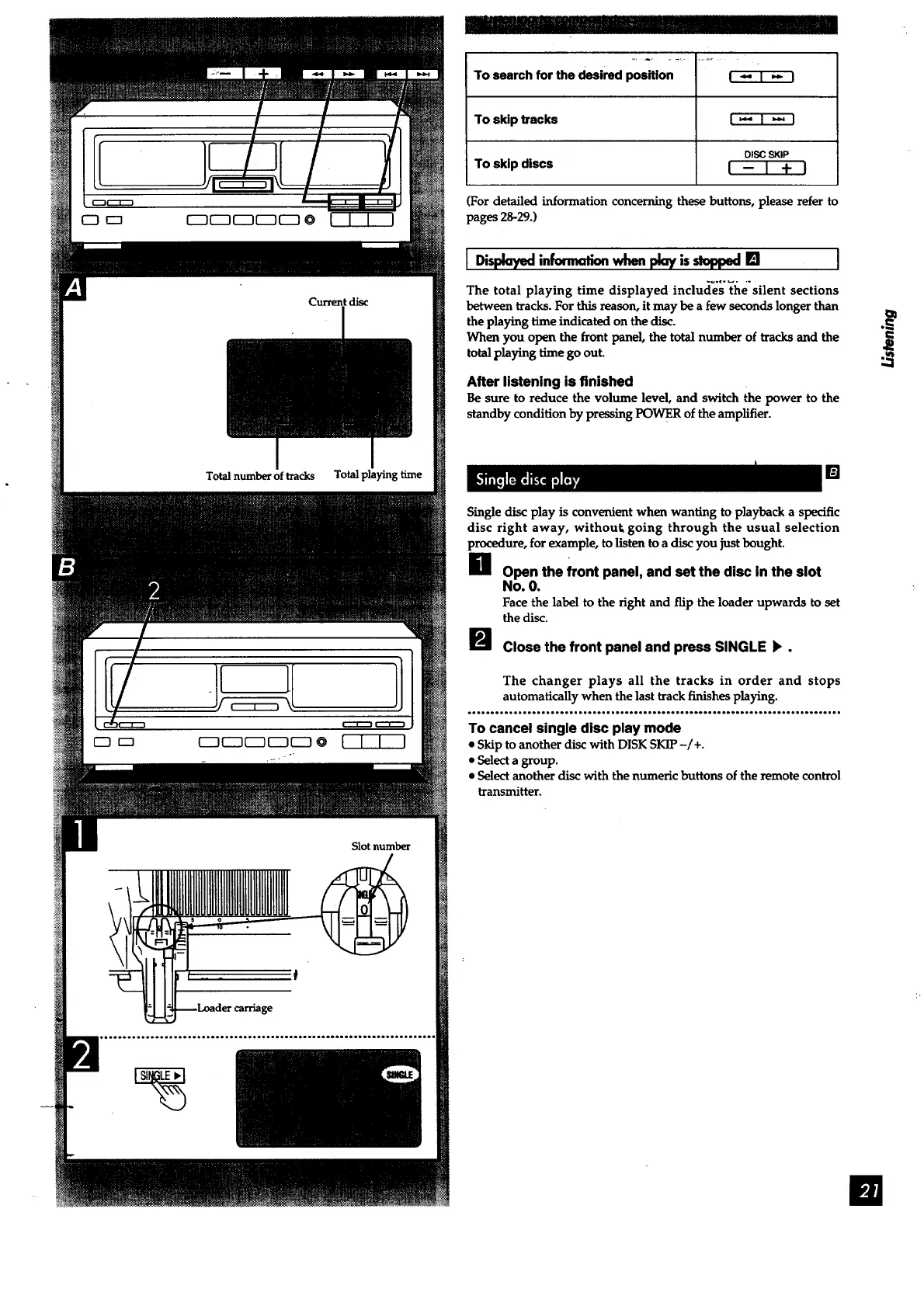 Single disc play is convenient when wanting to playback a specific