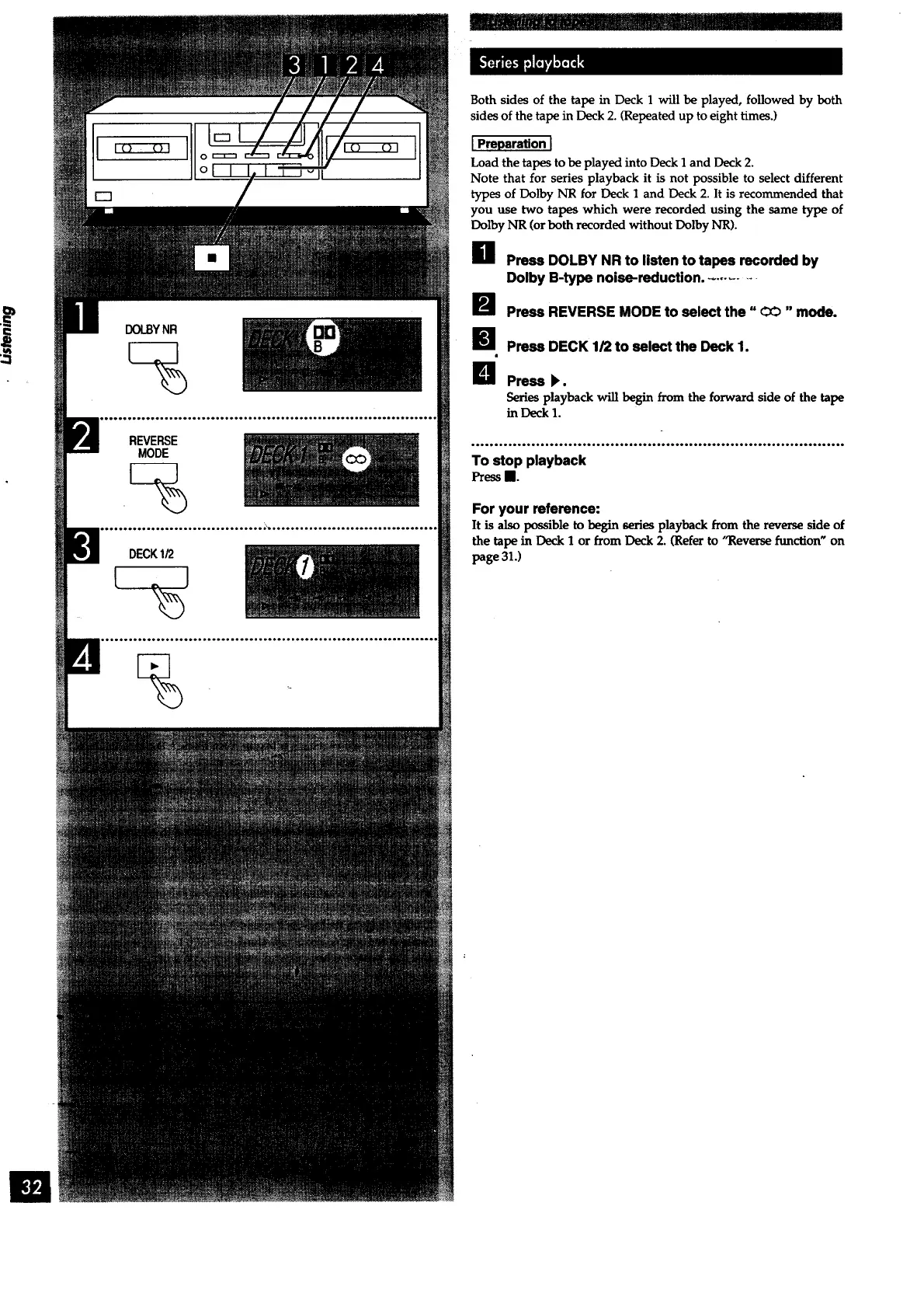 the tape in Deck 1 or from Deck 2. (Refer to "Reverse function"on