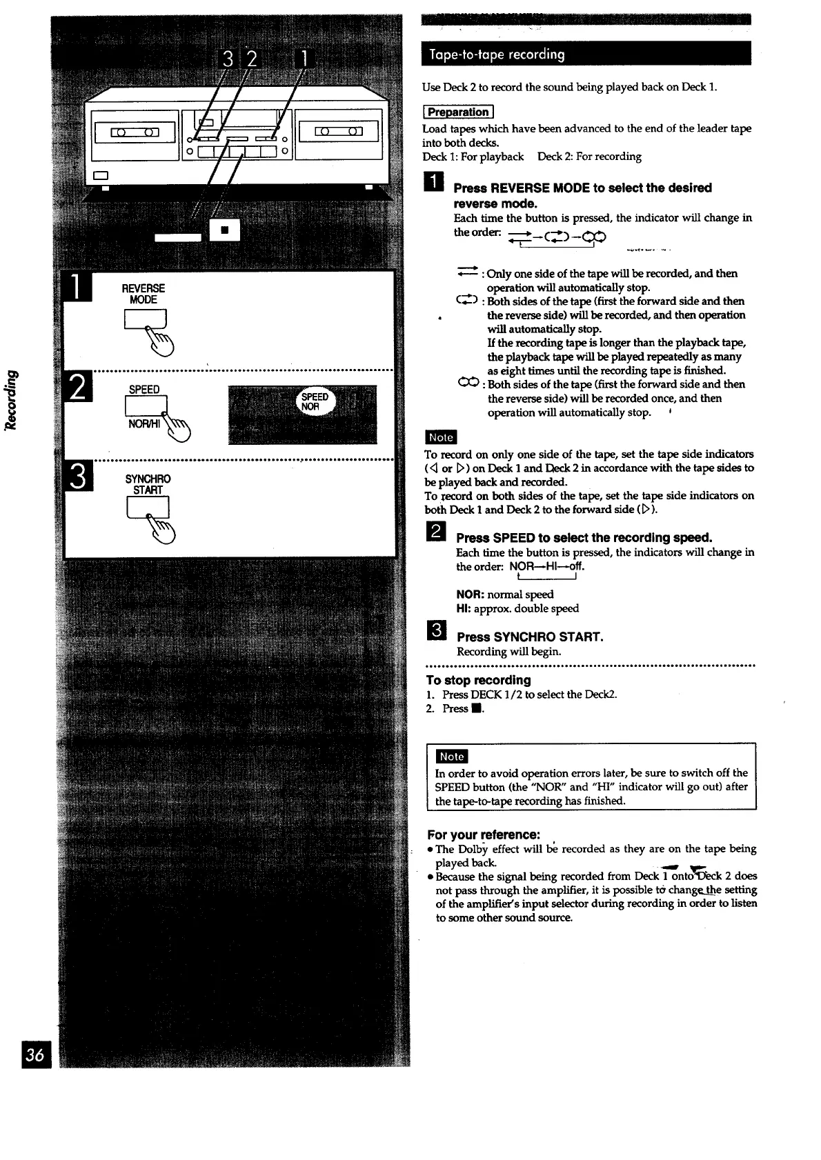 (<_ or _>) on Deck I and _ck 2 in accordance with the tape sides to