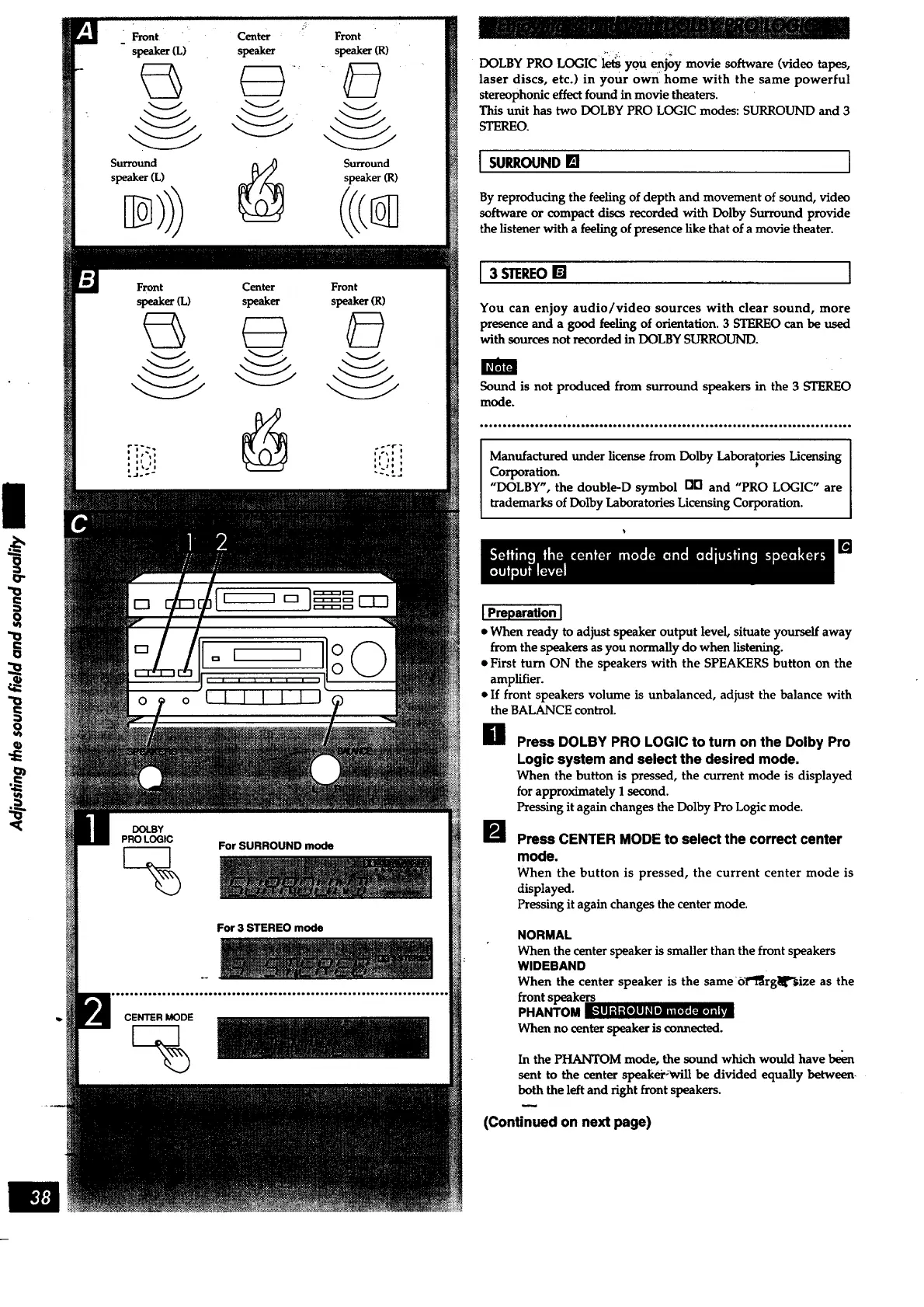 Thisunit has two DOLBY PRO LOGIC modes: SURROUND and 3