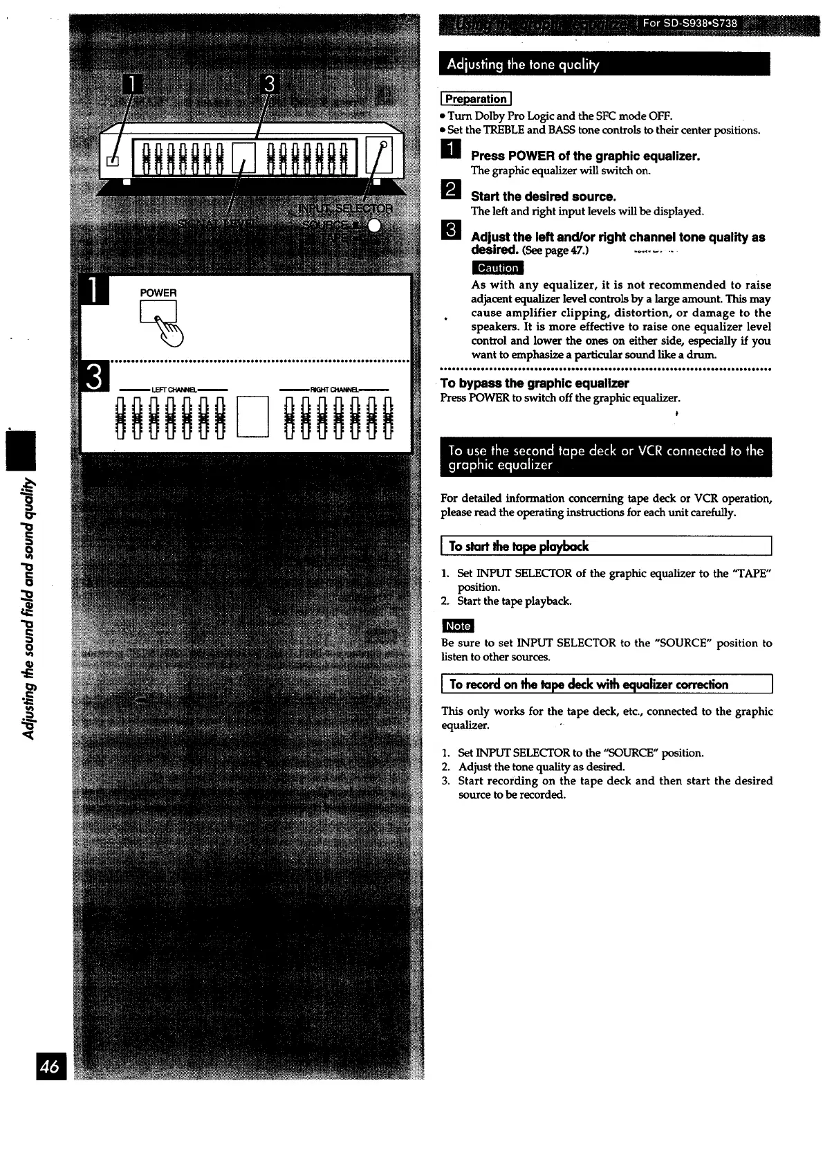 1. Set INPUT SELECTOR of the graphic equalizer to the "TAPE"
