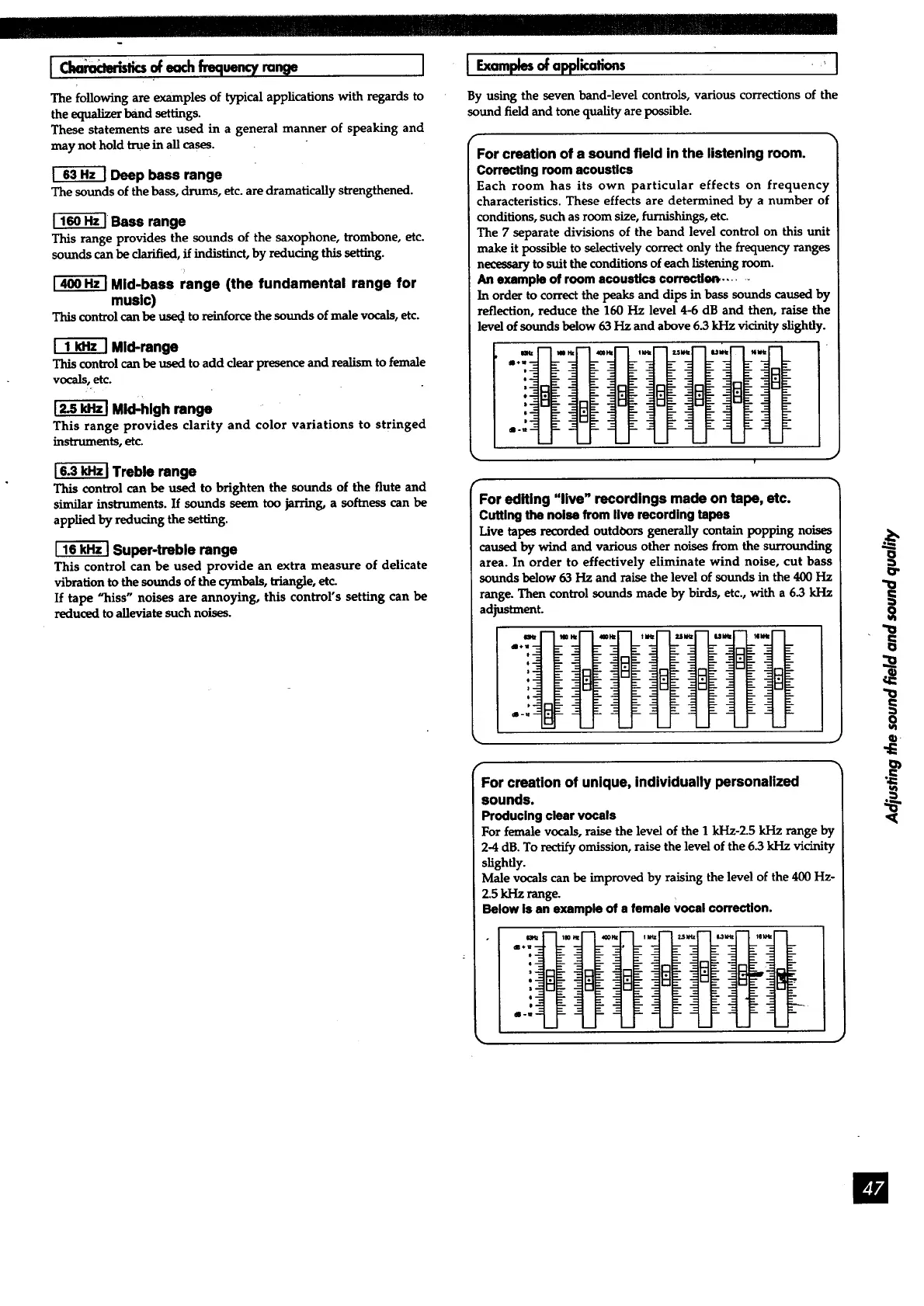 sounds below 63 Hz and raise the level of sounds in the 400 Hz
