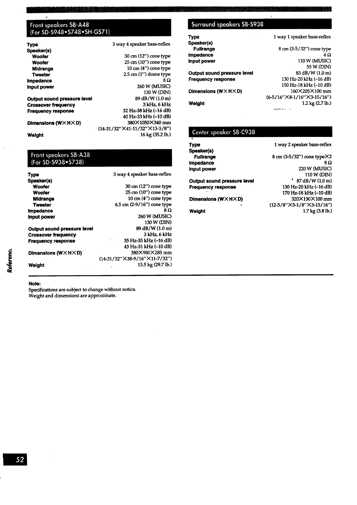 Woofer 30 cm (12") cone type Frequency response 130 Hz-20 kHz (-16 dB)