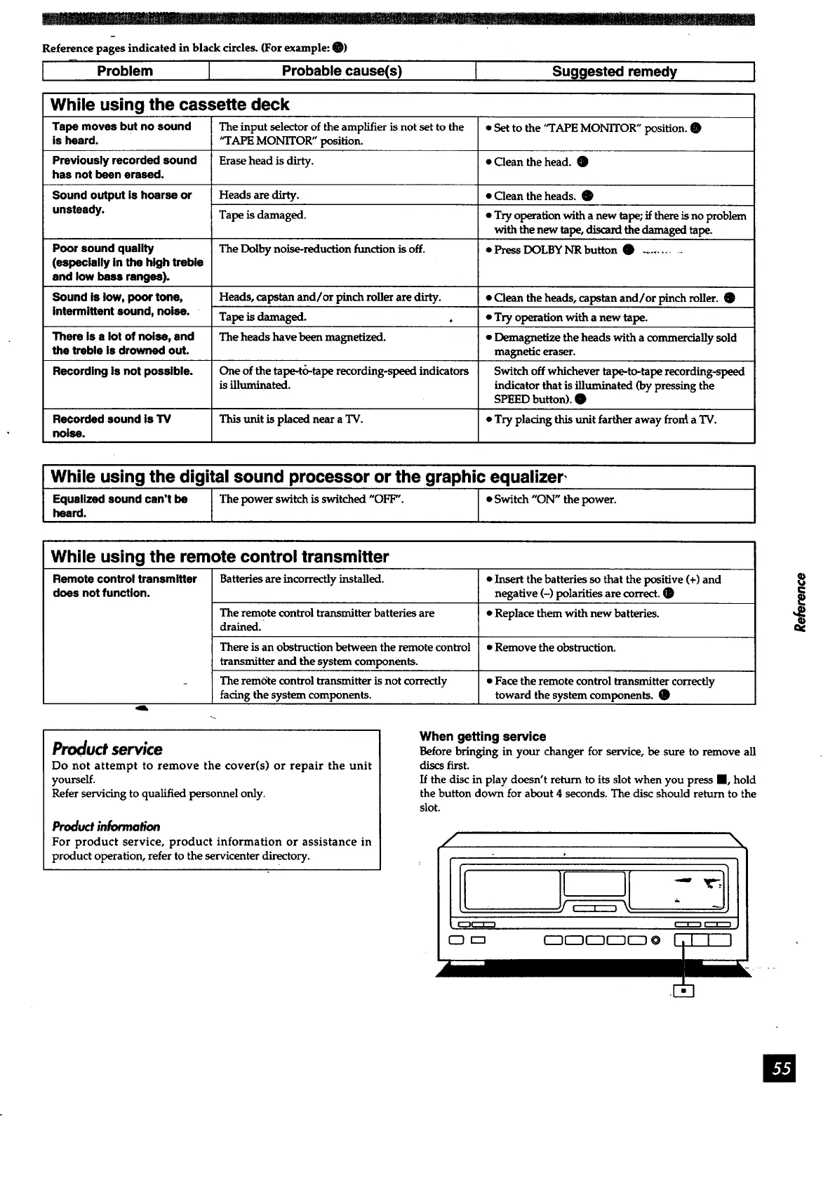 Poor sound quality The Dolby noise-reduction function is off. • PressDOLBY NR button O ..........