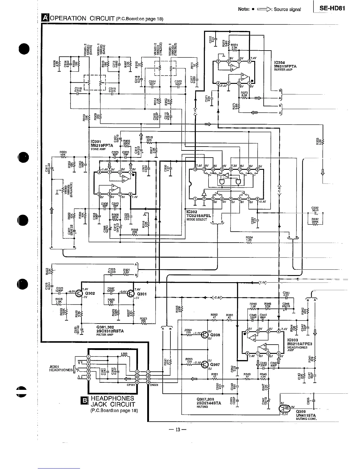 Technics SE-HD81 - Operation Circuit; Headphones Jack Circuit