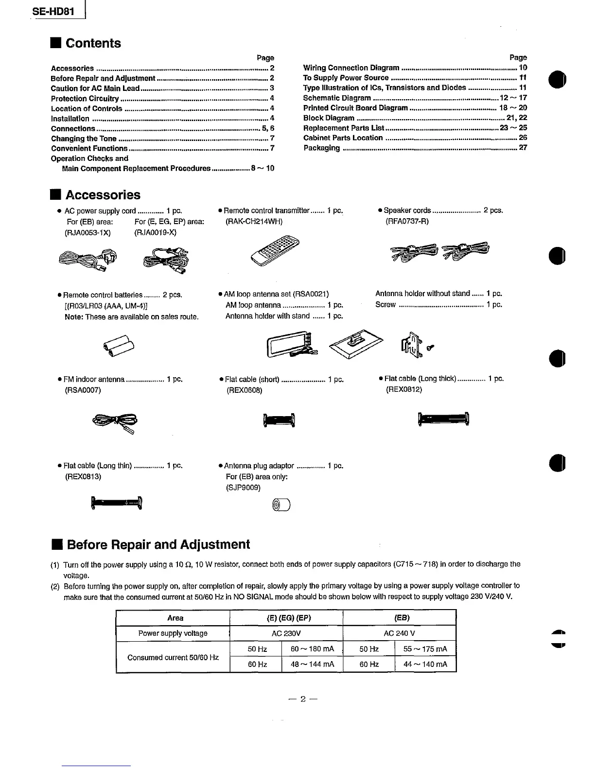 Technics SE-HD81 - Before Repair and Adjustment; Accessories