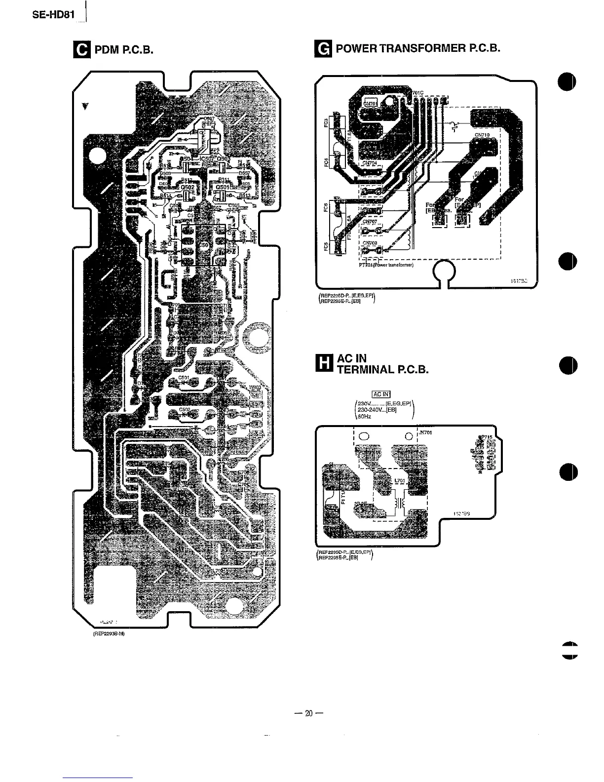 Technics SE-HD81 - PDM PCB Diagram; Power Transformer PCB Diagram; AC In Terminal PCB Diagram