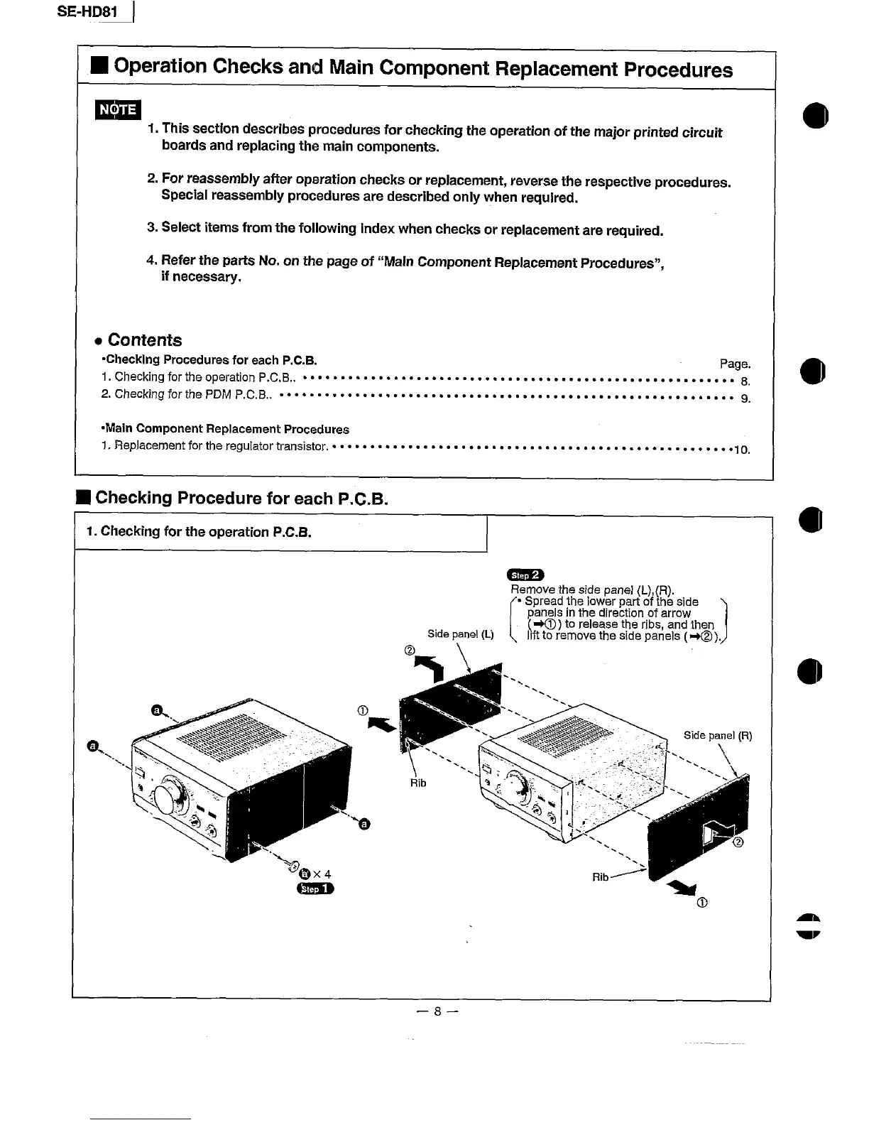 Technics SE-HD81 - Operation Checks and Component Replacement; Checking Procedures for PCBs