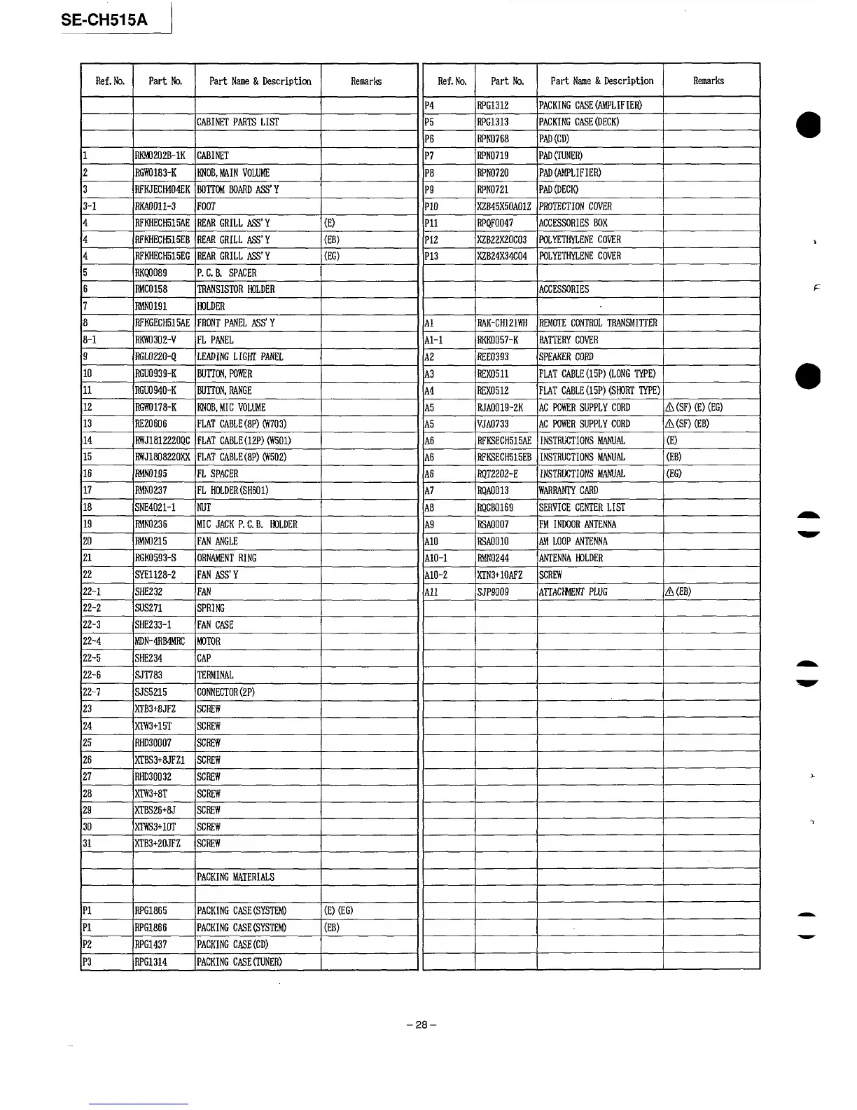I Ref.No.I Part No. I Part Name&Des.rirt.ion I Remarks I