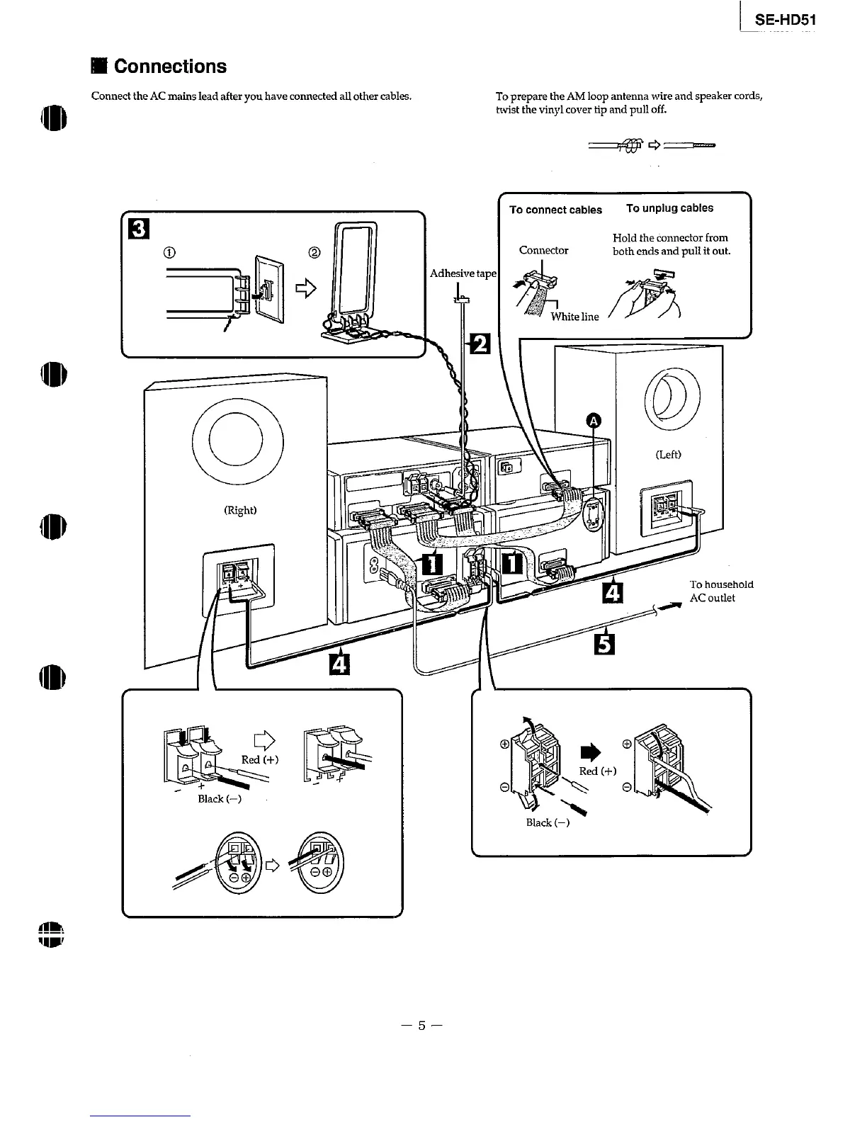 Technics SEHD-51 - Connections; To Connect Cables; To Unplug Cables