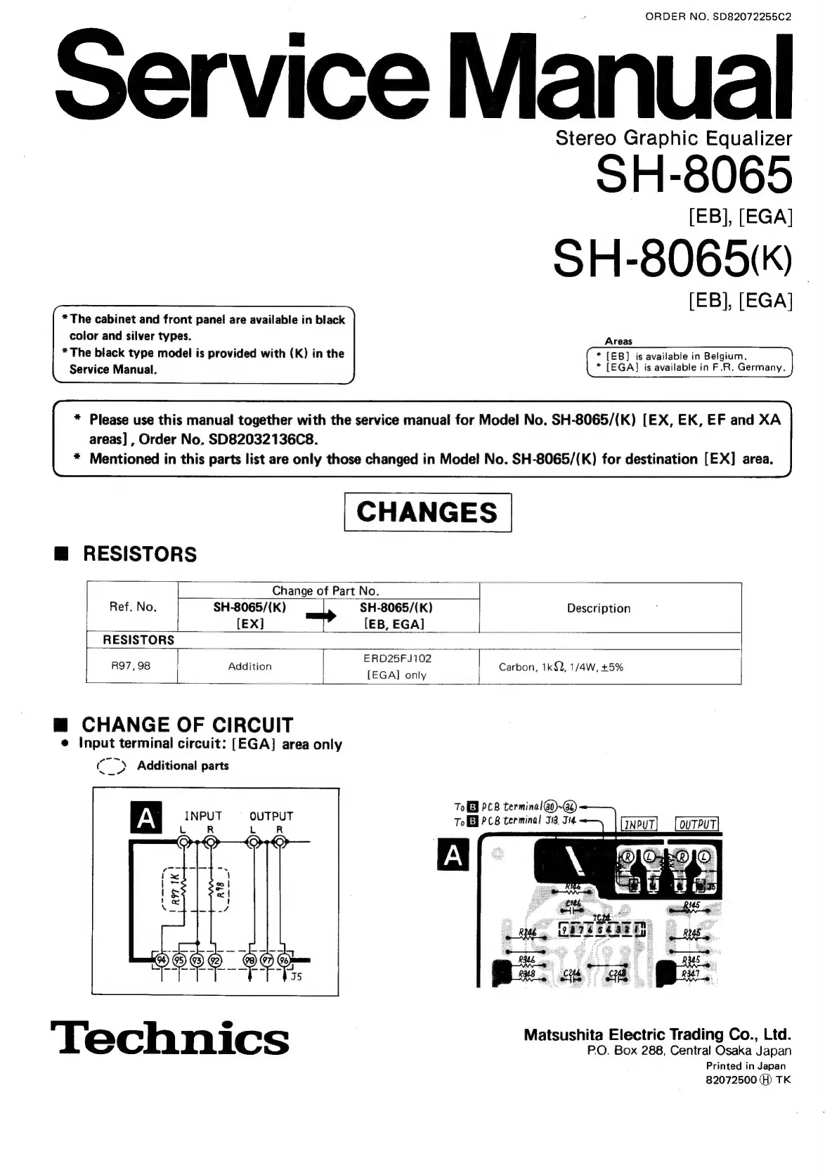 Technics SH-8065 - Service Manual Revisions; Resistor Part Number Updates; Circuit Modification Details