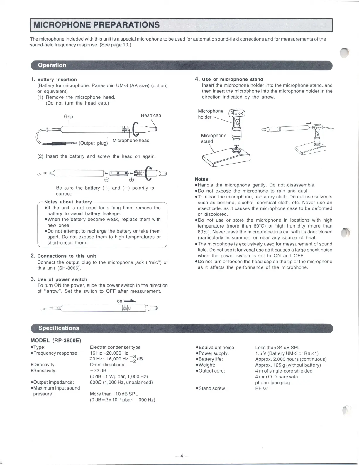(Battery for microphone: Panasonic UM-3 (AA size) (option)