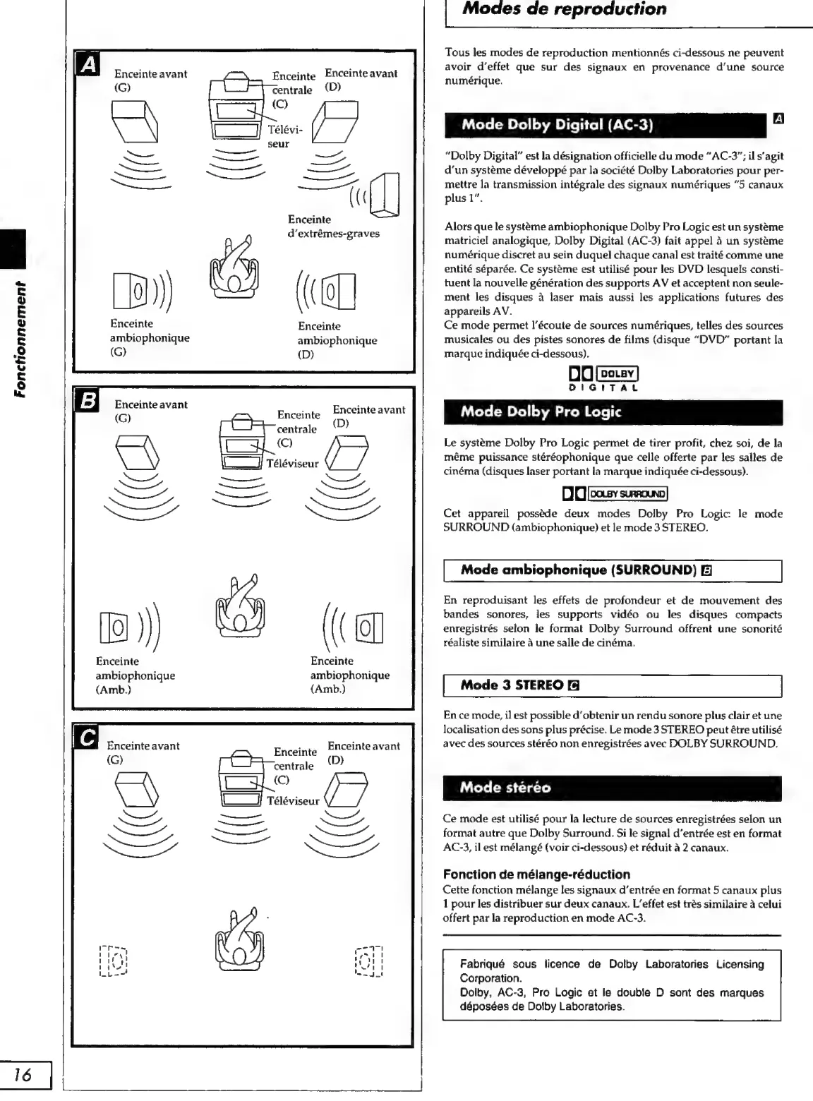 Technics SH-AC300 - Modes de Reproduction