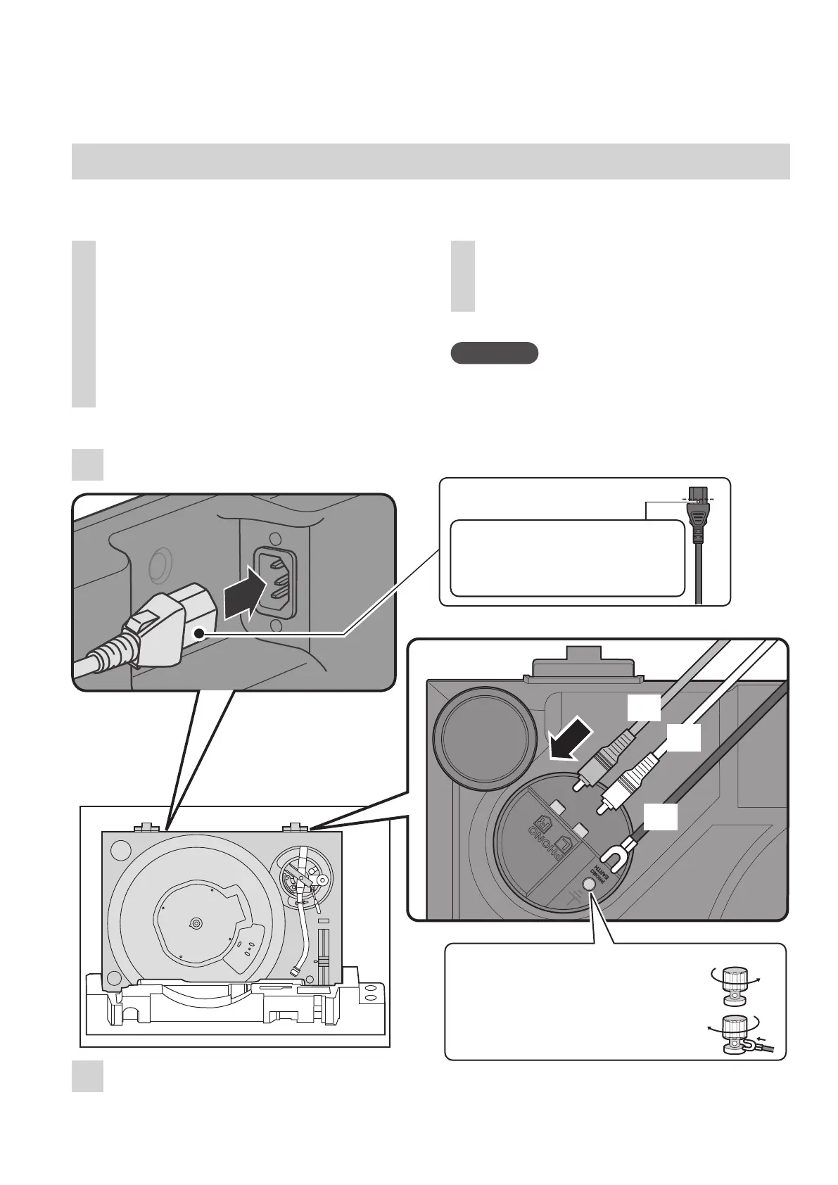 Maak verbinding met de PHONO-aansluitingen en AC IN-aansluiting voor het opzetten van of het