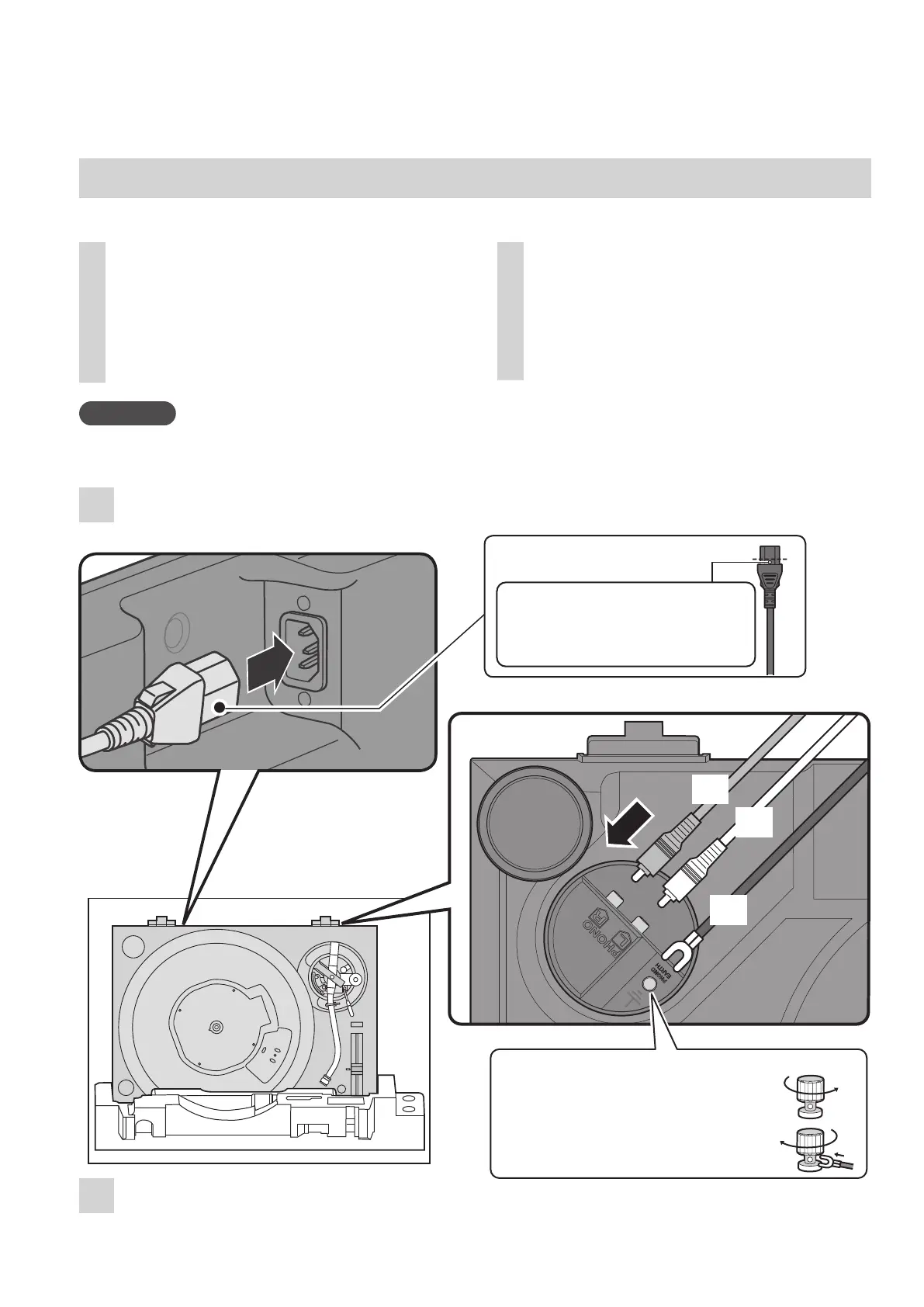 Dokonaj podłączenia do gniazd PHONO i AC IN przed konfiguracją i instalacją odtwarzacza.