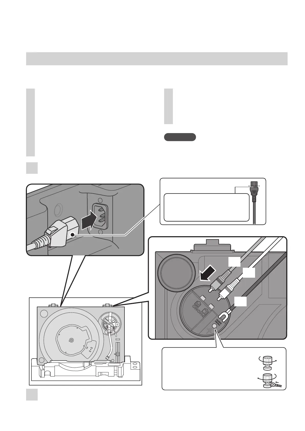 Verbinden Sie die PHONO-Anschlüsse und den AC IN-Anschluss, bevor Sie den Plattenspieler aufstellen oder