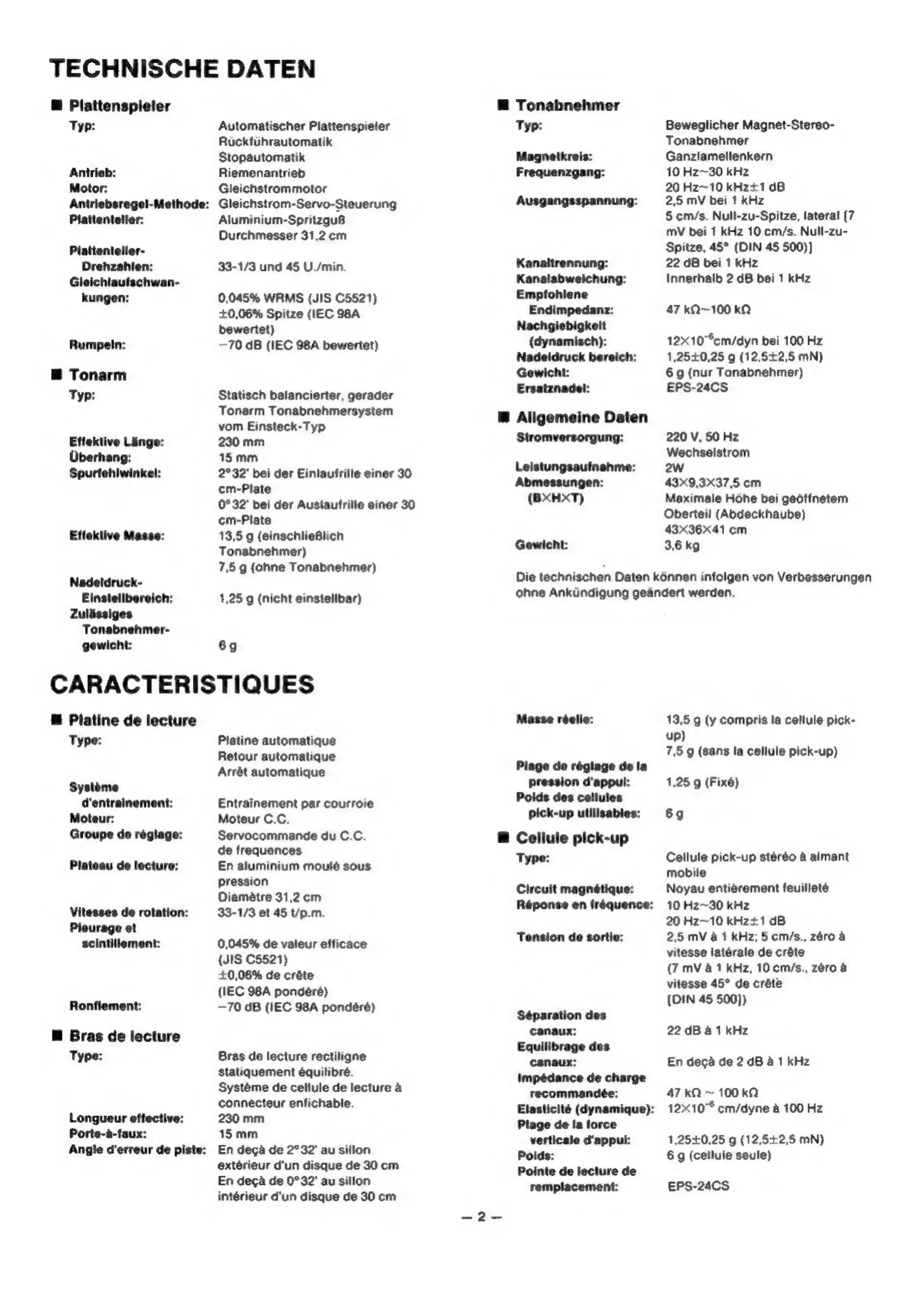 Technics SL-BD21 - Technische Daten