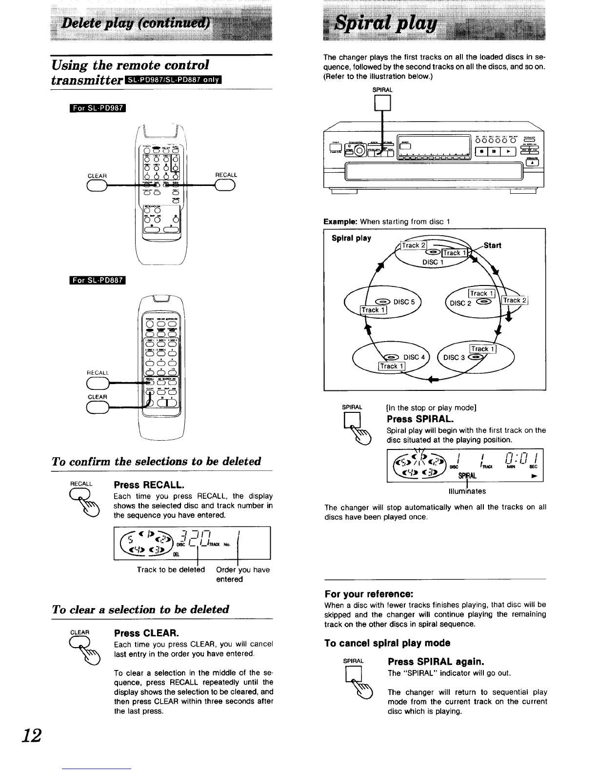 Spiral play will begin with the first track on the