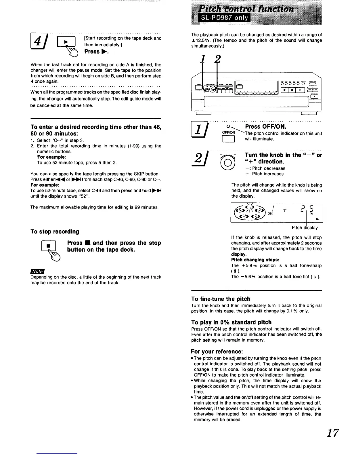 • The pitch can be adjusted by turning the knob even if the pitch