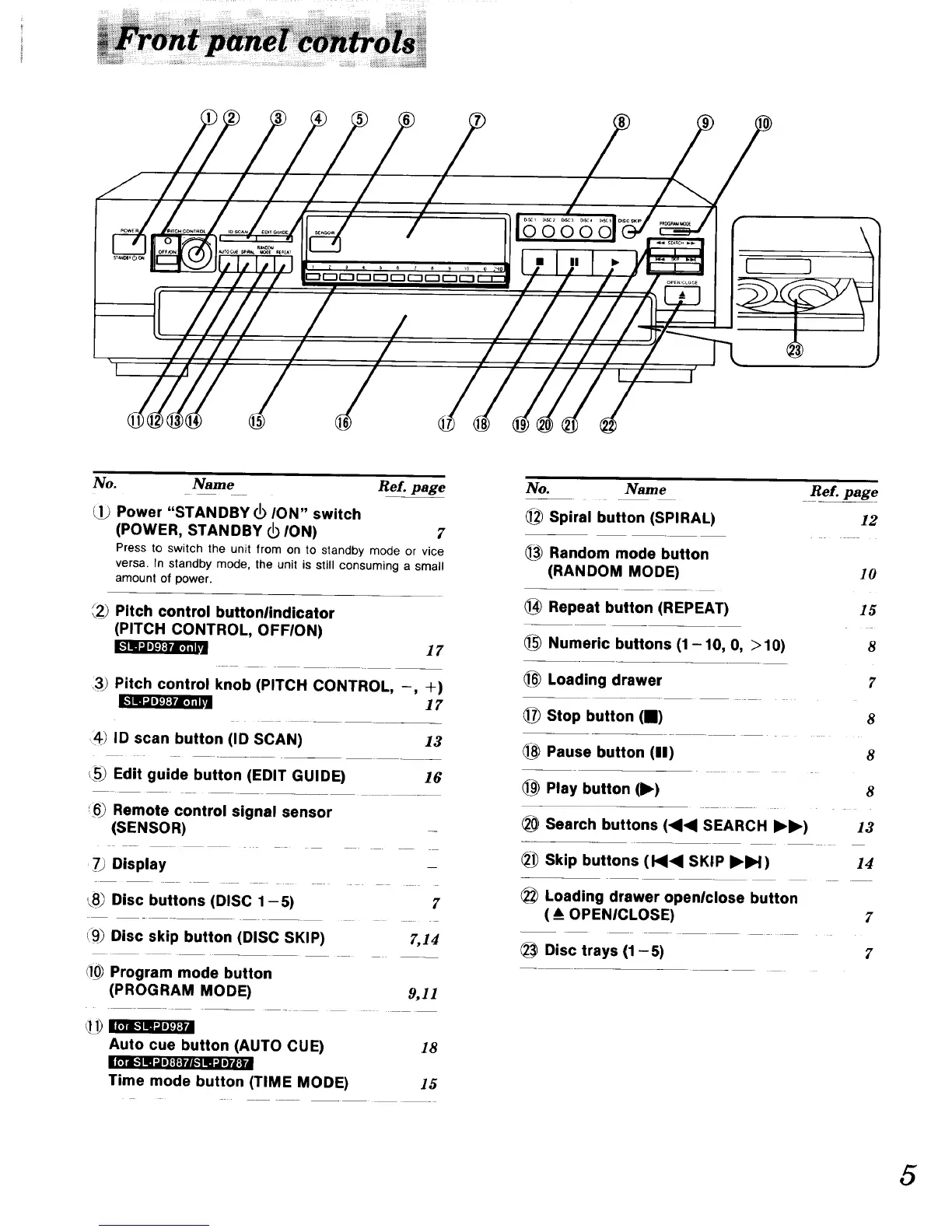 Disc buttons (DISC 1 -5) 7