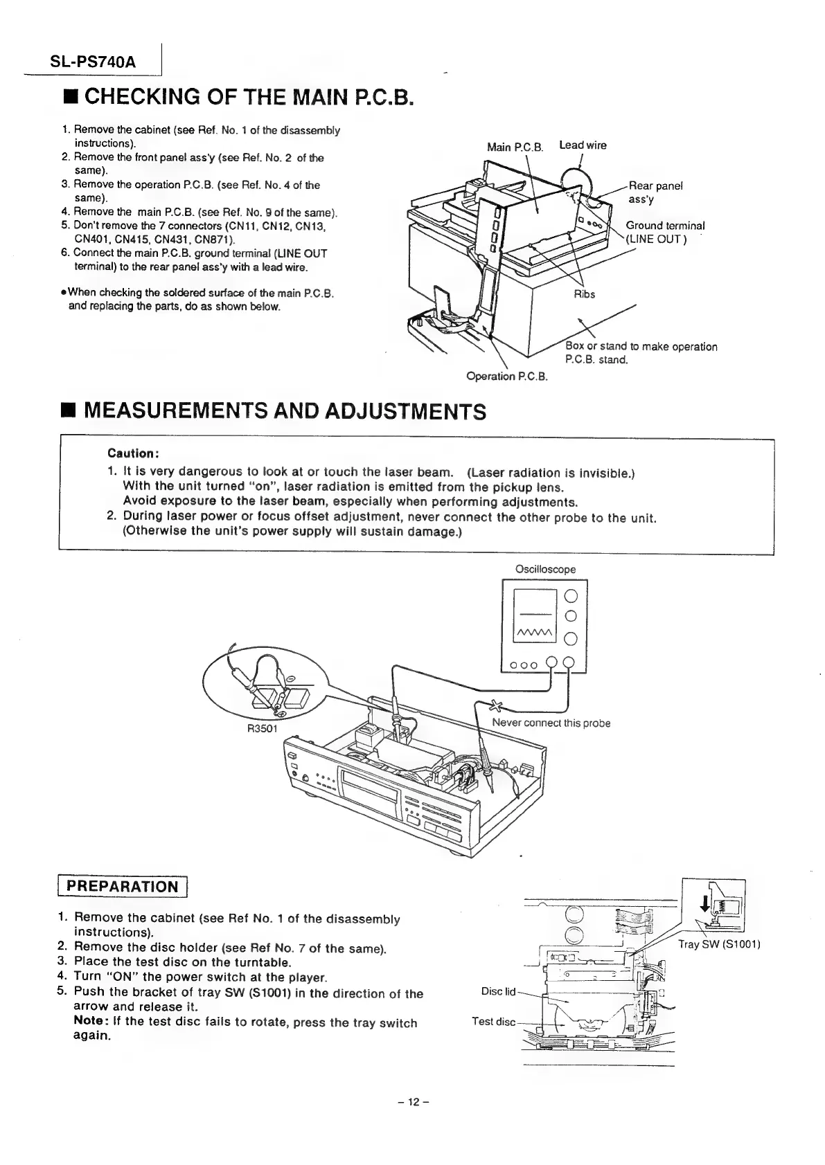 Technics SL-PS740A - Checking of the Main P.C; Measurements and Adjustments
