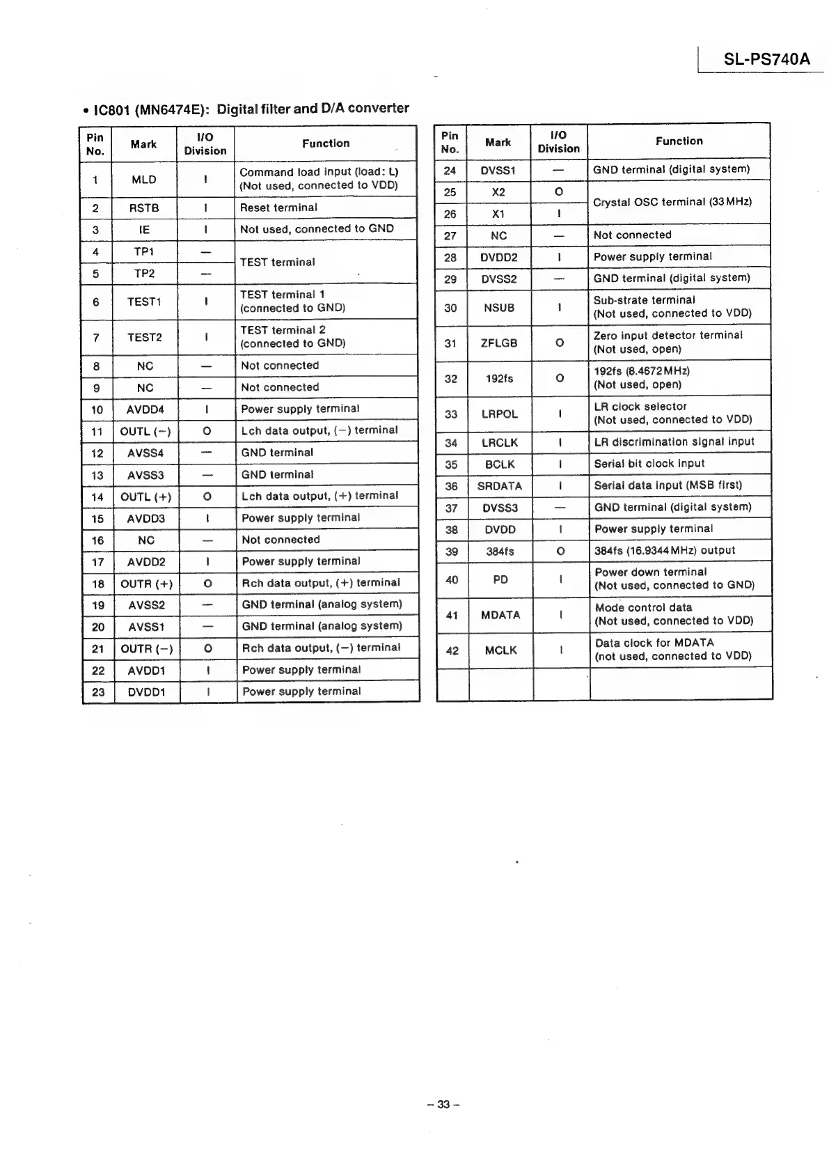 Technics SL-PS740A - Test Terminal;(Connected to Gnd); (Connected to GND); TEST Terminal