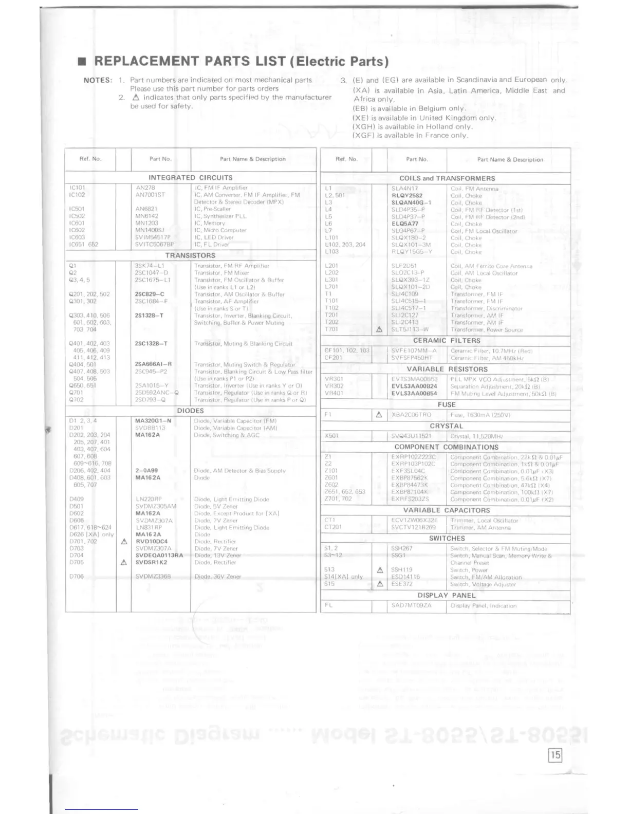 Technics ST-8055 - Replacement Parts List