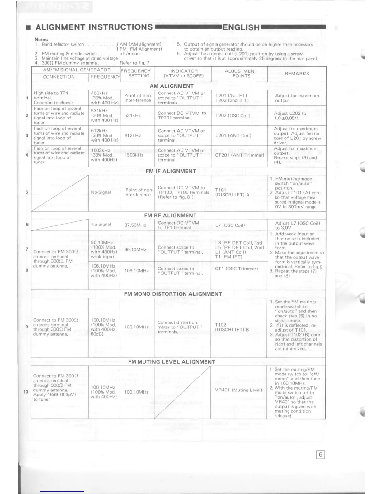 Technics ST-8055 - Alignment Instructions; AM Alignment; FM if Alignment; FM RF Alignment