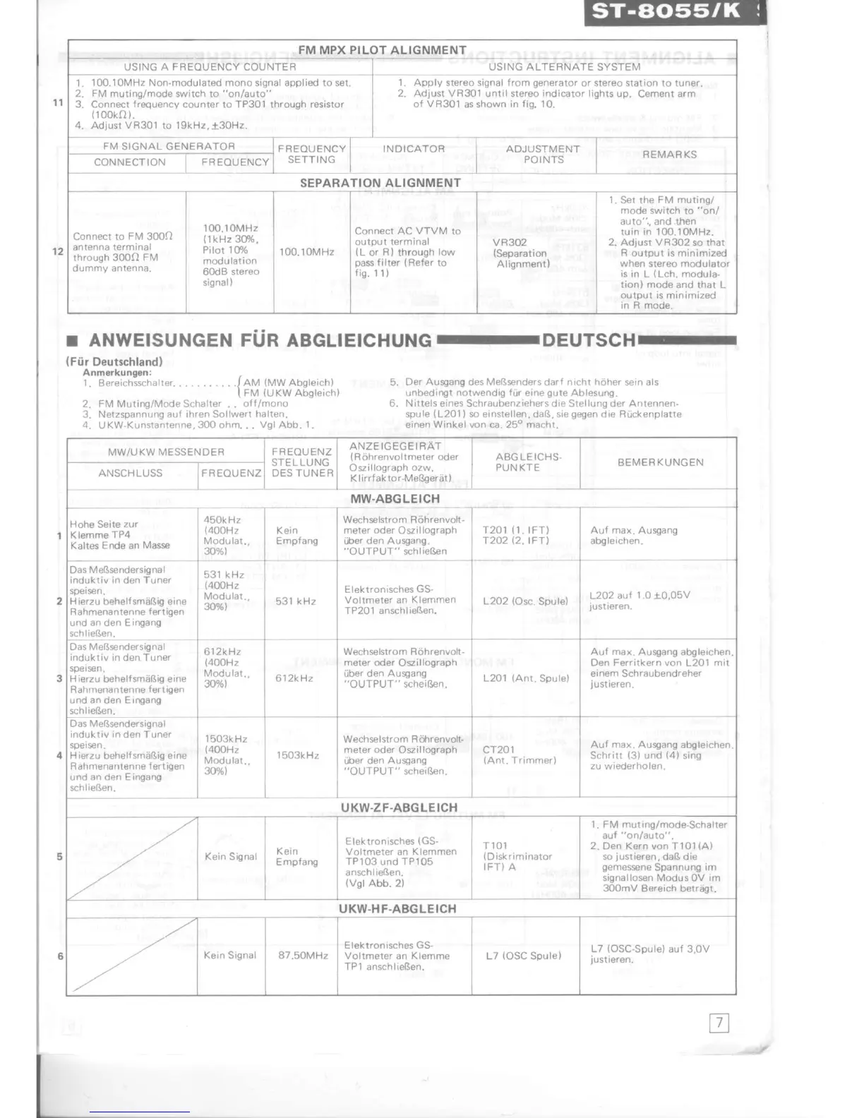 Technics ST-8055 - FM MPX Pilot Alignment; Separation Alignment