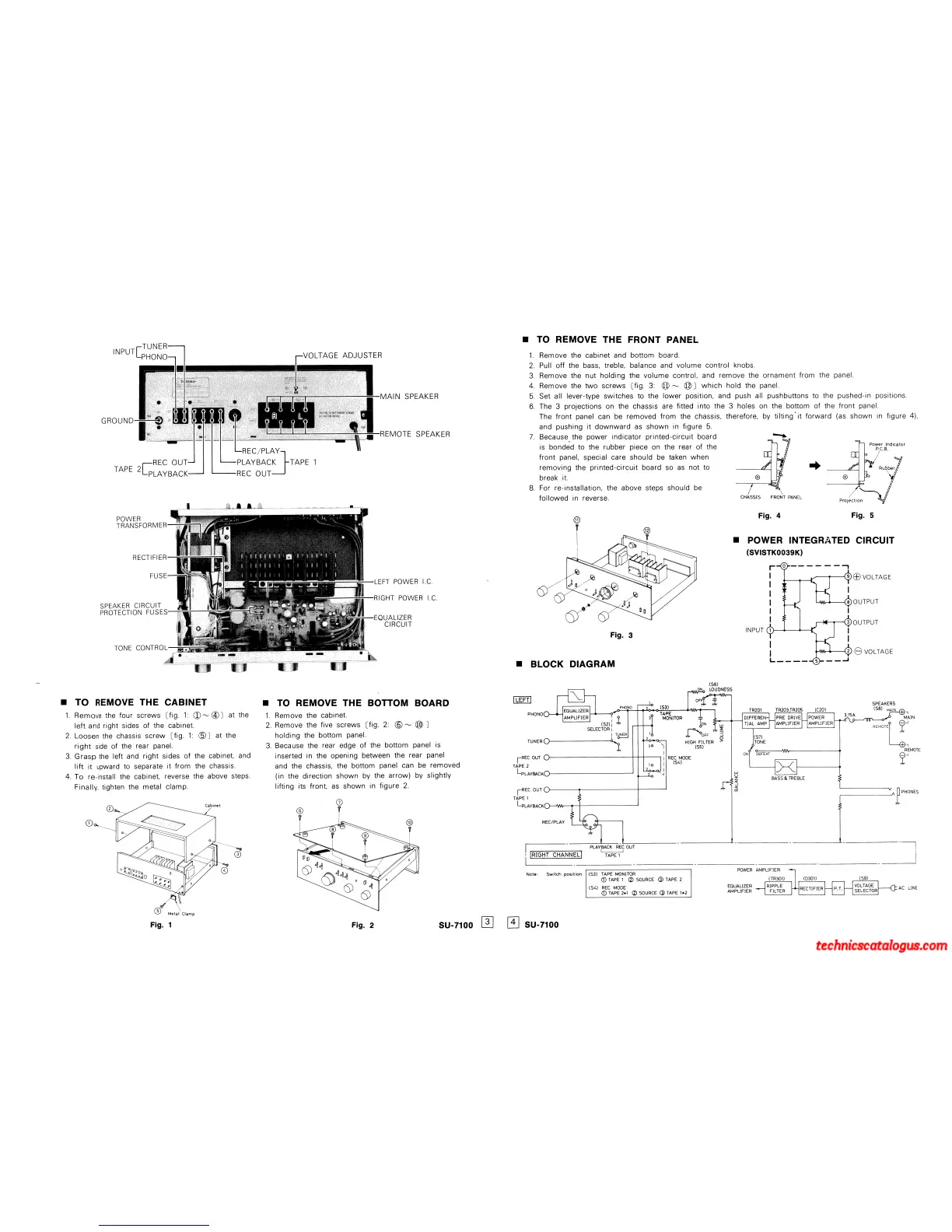 Technics SU-7100 (XSW) - Disassembly and Assembly Procedures; Front Panel Removal Procedure; Bottom Board Removal Procedure; Cabinet Removal Procedure