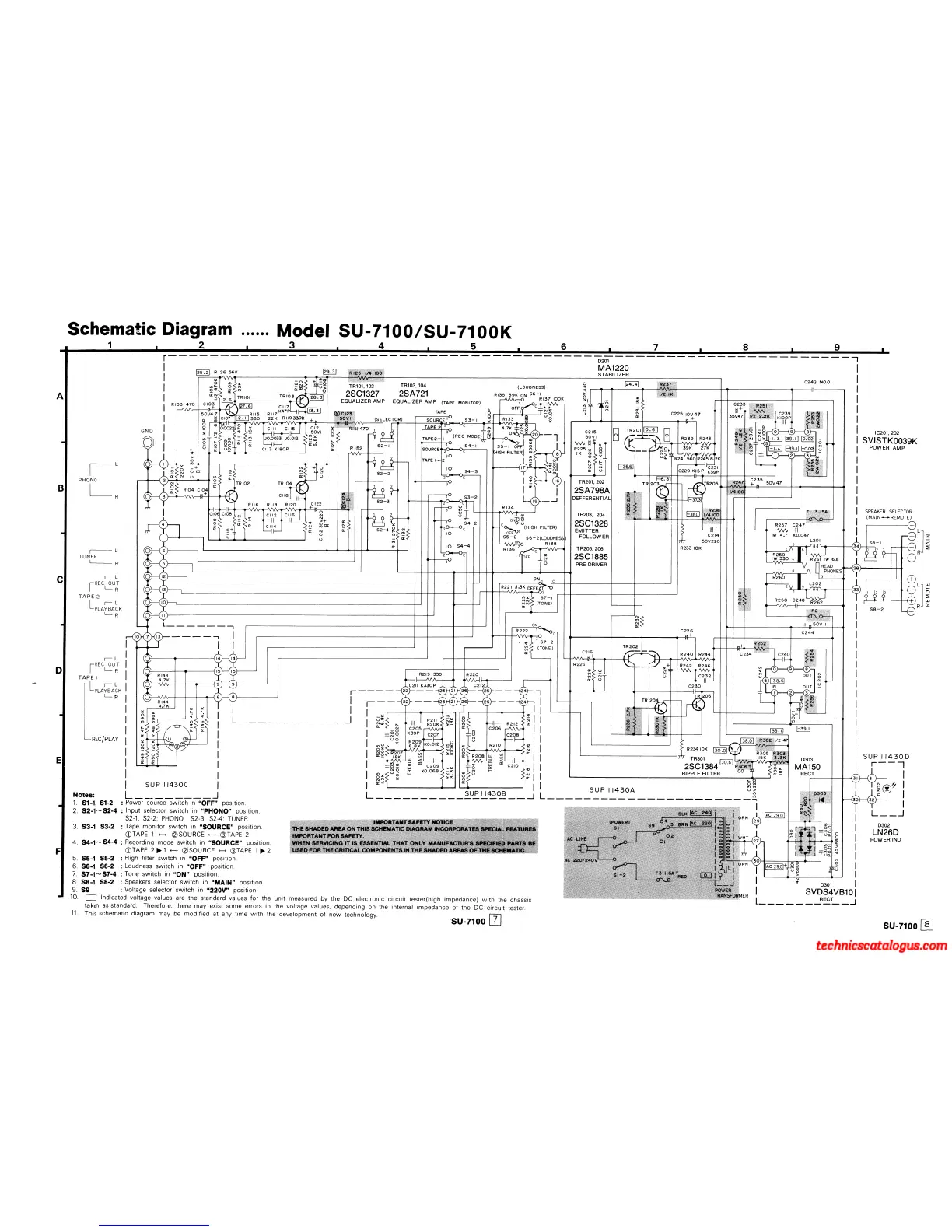 Technics SU-7100 (XSW) - Schematic Diagram and Safety; Schematic Diagram; Important Safety Notes for Diagrams