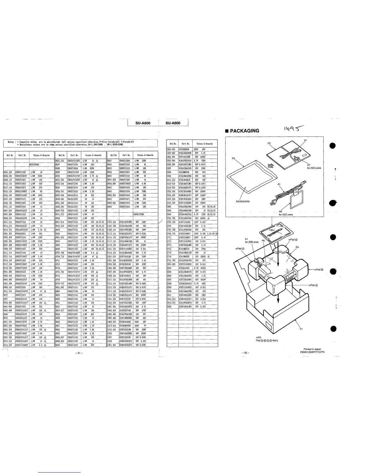 Notes : * Capacity values are in microfarads (uF) unless specified otherwise, P=Pico-farads(pF) F=Farads(F)