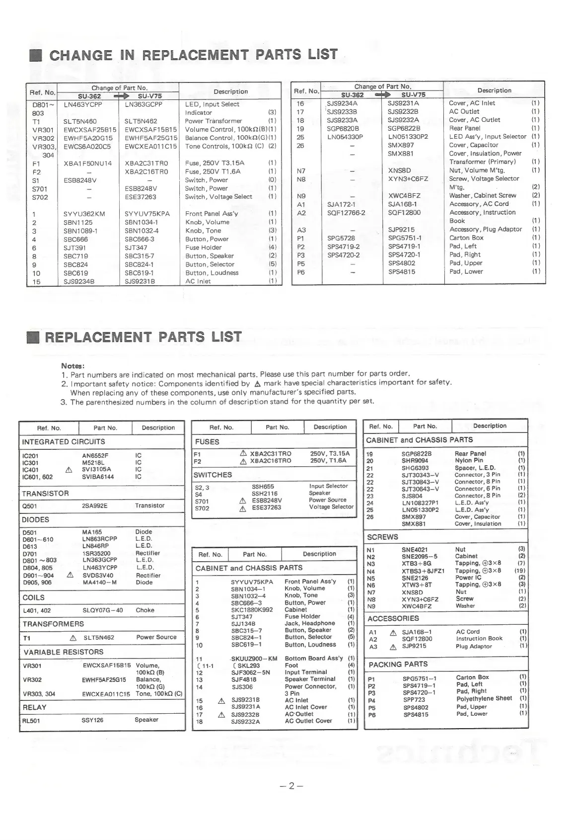 Technics SU-V75 - Parts List; Variable Resistors