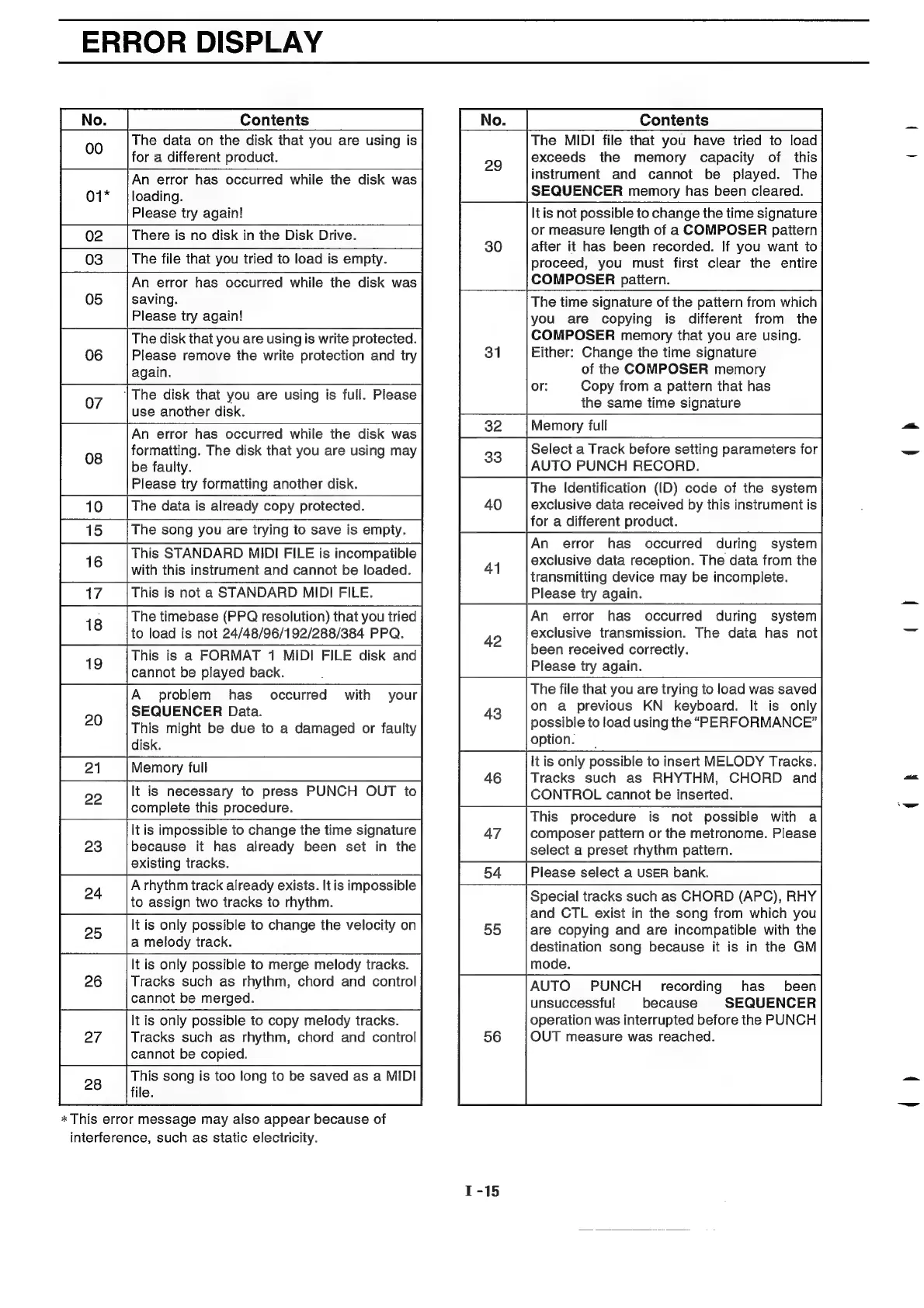 Technics SX-KN1400 - Error Display
