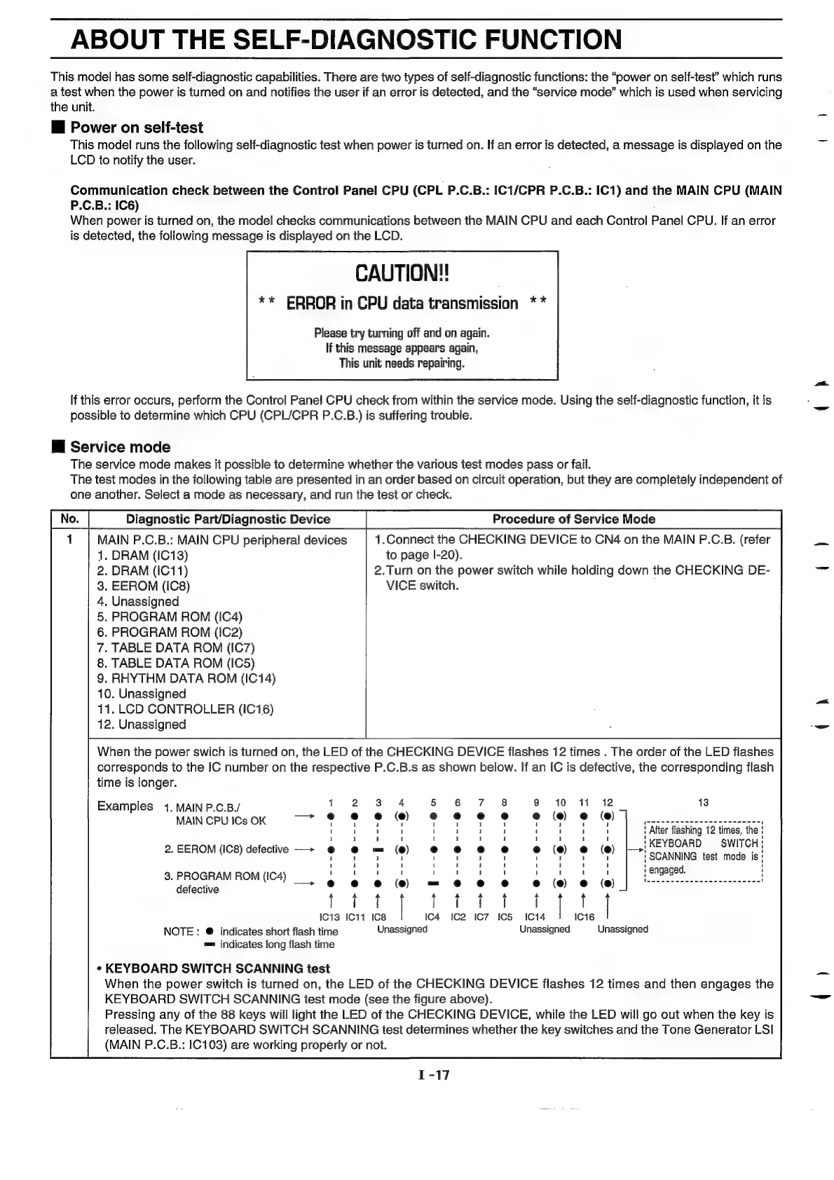 Technics SX-KN1400 - About the Self-Diagnostic Function