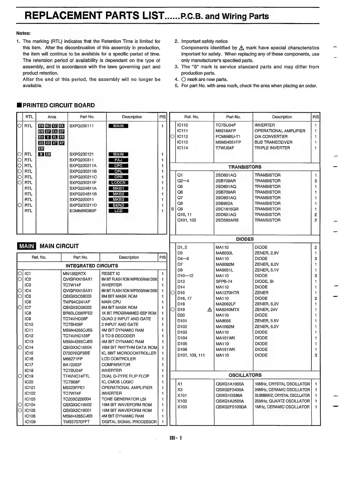 Technics SX-KN1400 - Ml REPLACEMENT PARTS LIST