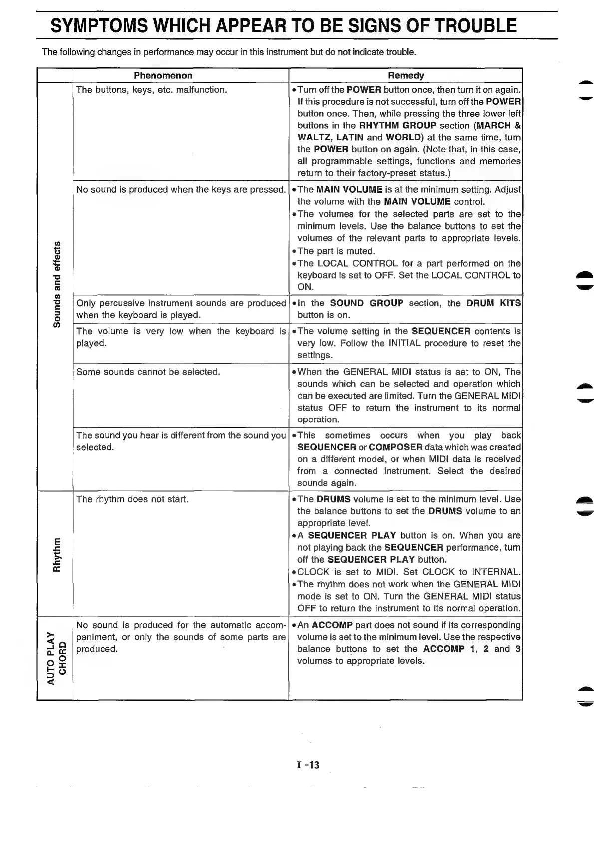 Technics SX-KN1600 - Symptoms Which Appear to be Signs of Trouble