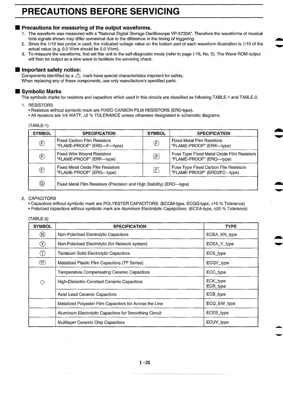 Technics SX-KN1600 - PRECAUTIONS before SERVICING ou