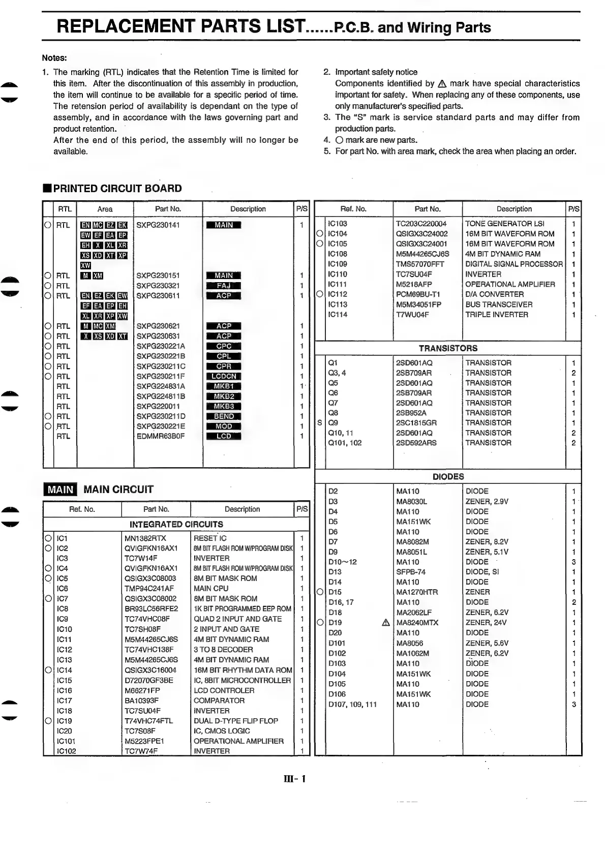 Technics SX-KN1600 - MI REPLACEMENT PARTS LIST