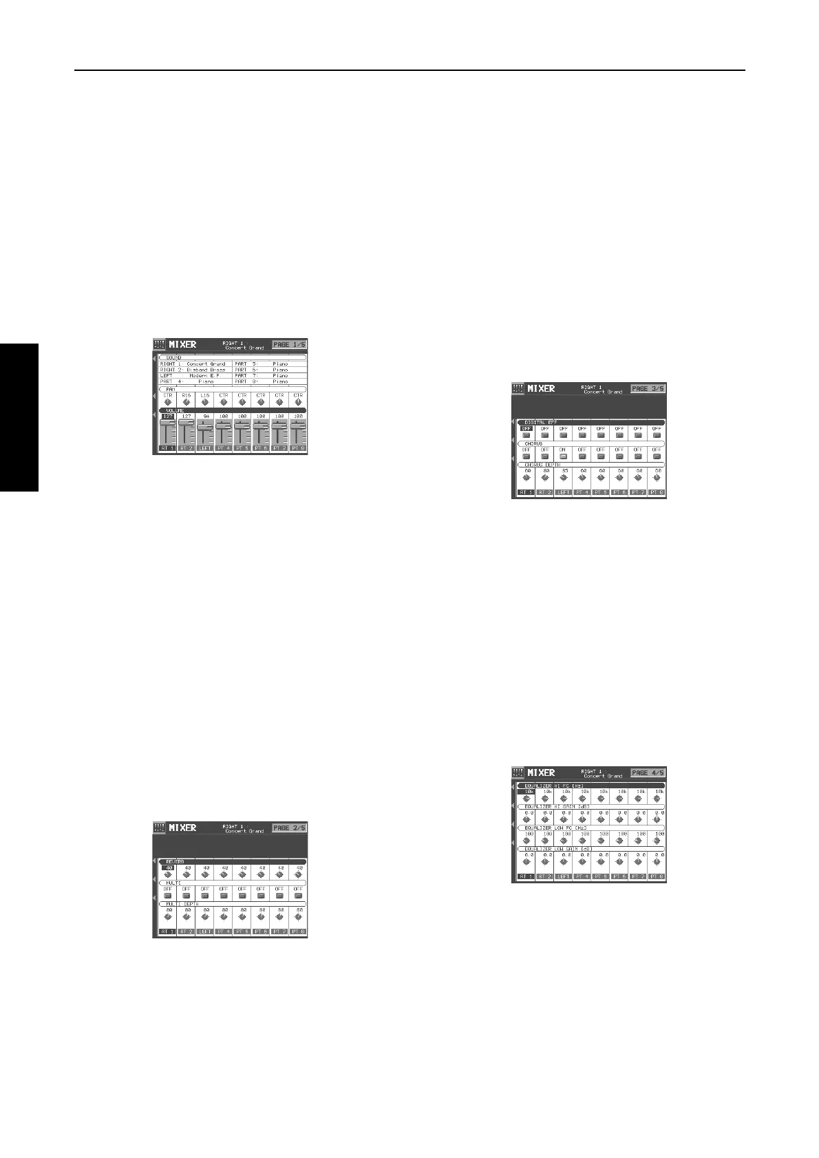Use the MIXER display to visually adjust the major settings of each part. Use this display to make broad,