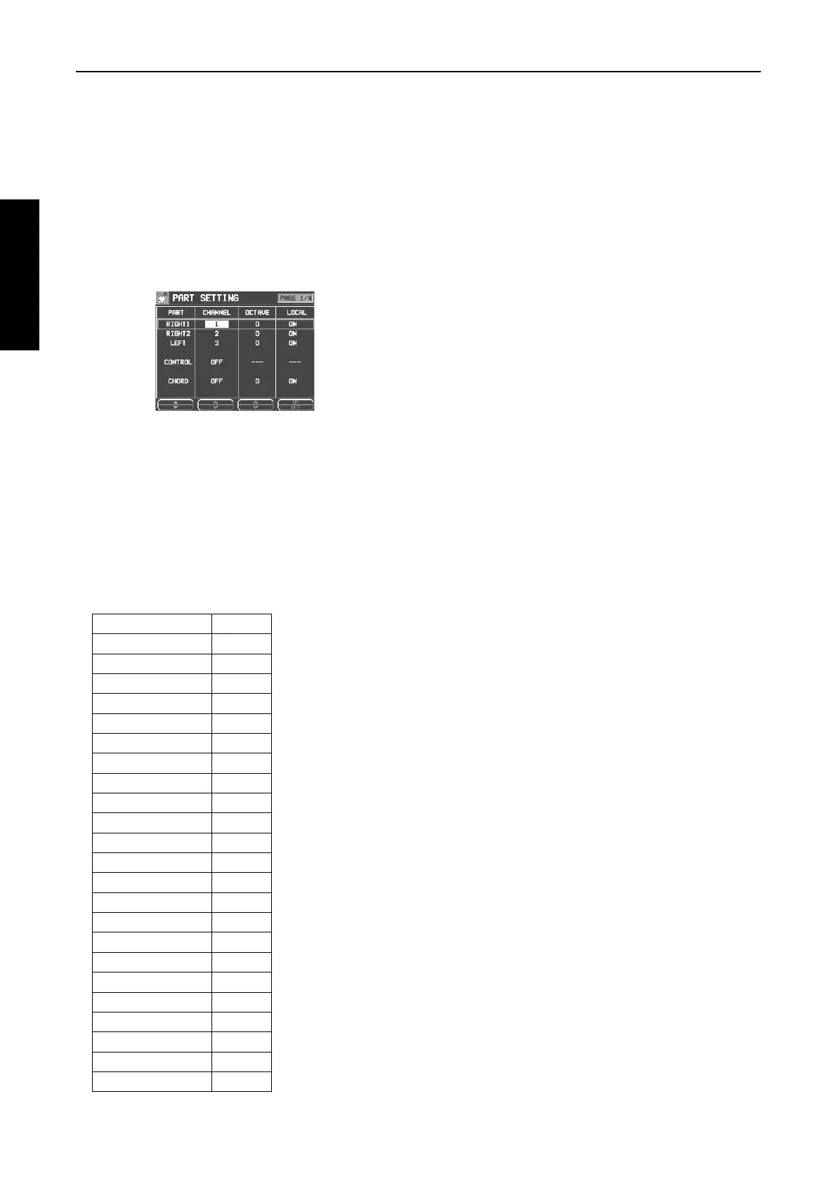 Follow this procedure to set the functions which can be set for each part: MIDI CHANNELs, the OCTAVE