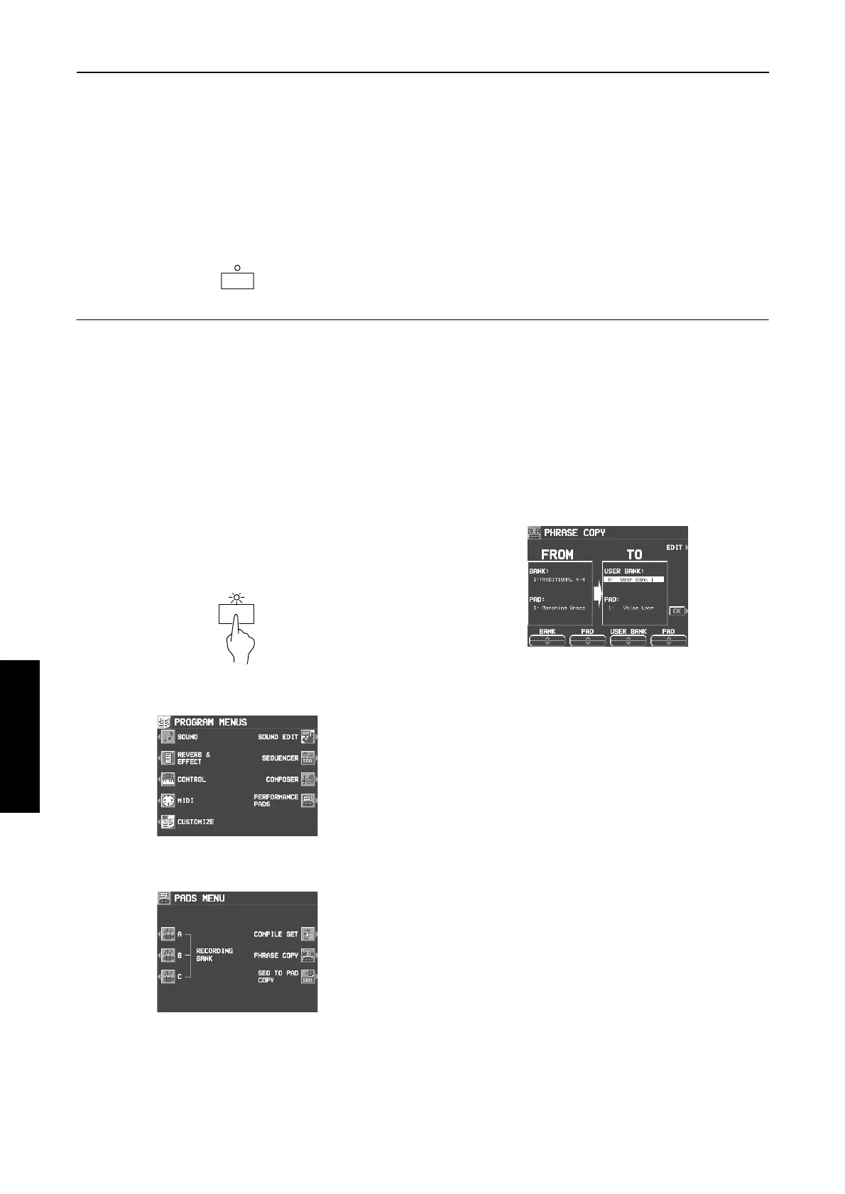 You can copy the desired data, as phrases, from the SEQUENCER to each pad memory of a “User