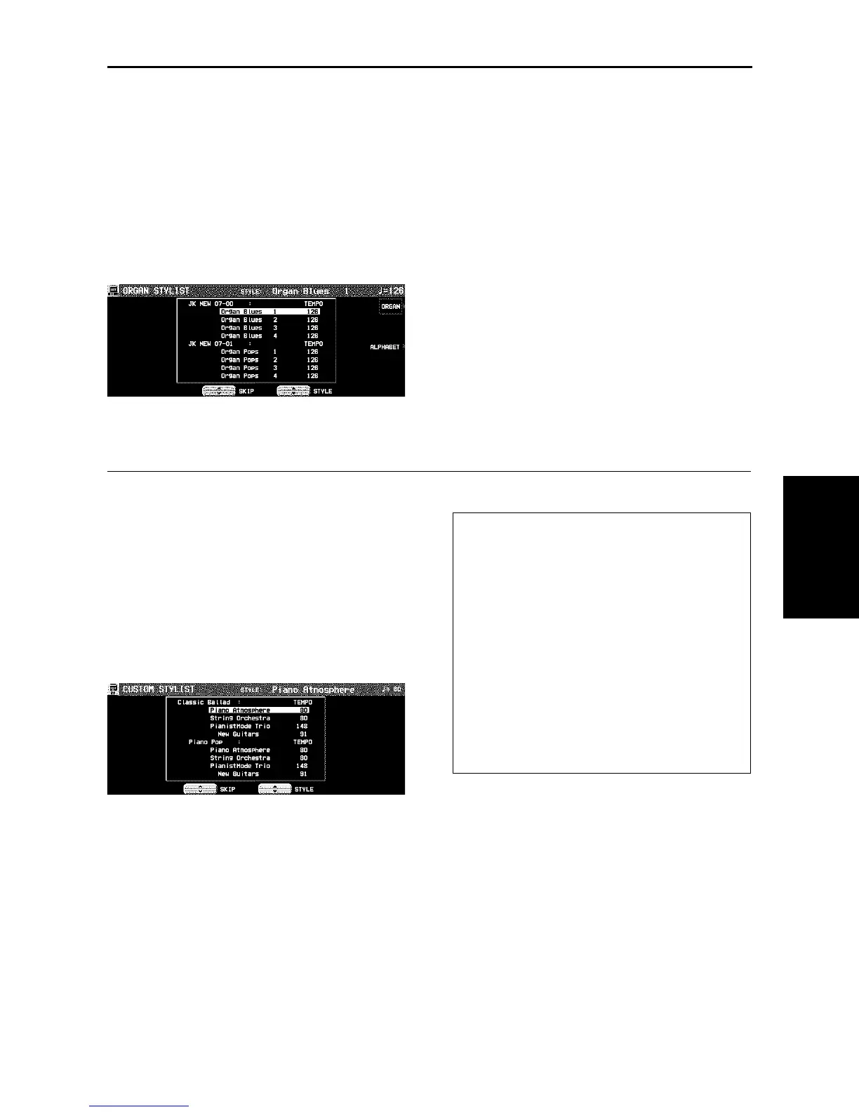 3. Use the STYLE ▲ and ▼ buttons to select a