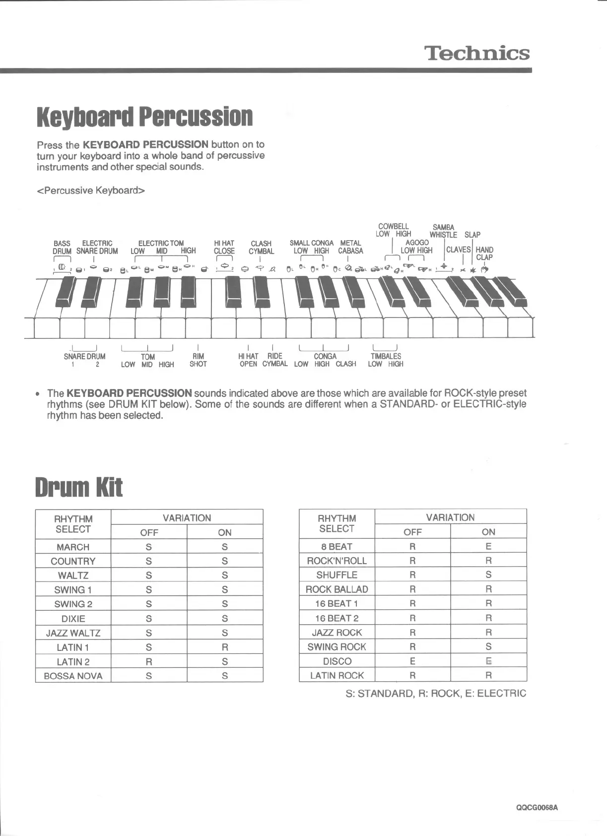 rhythms(seeDRUMKITbelow).Someofthe soundsaredifferentwhena STANDARD-or ELECTRIC-style
